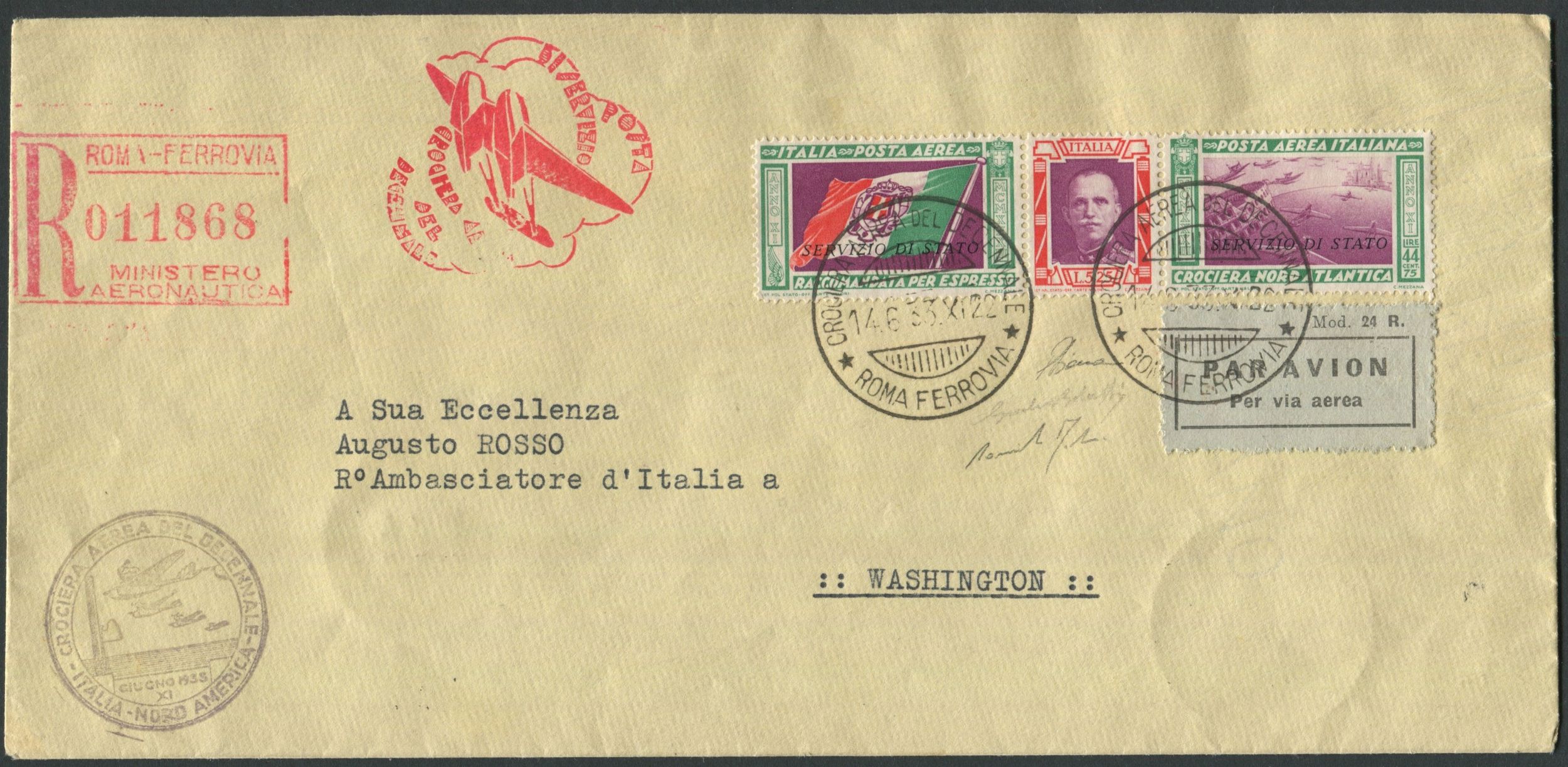 1933, Crociera aerea del Decennale, Trittico Servizio di Stato (1) su Raccomandata [..]