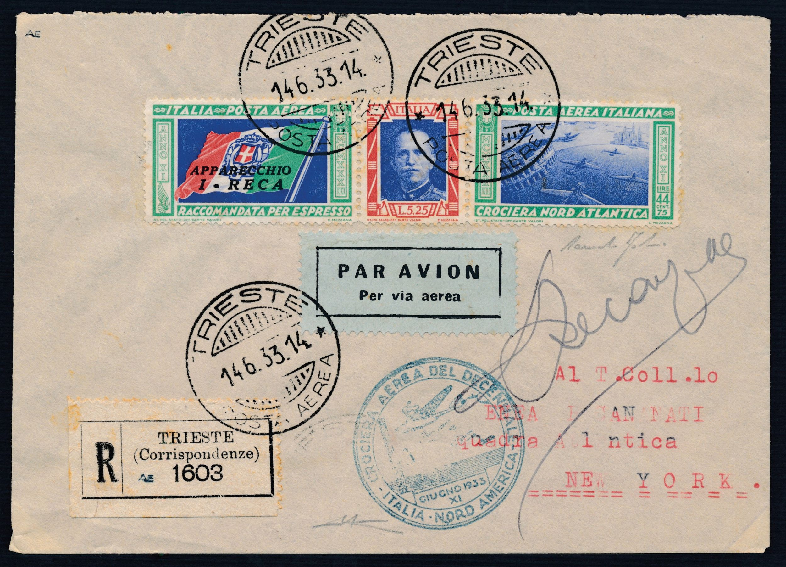 1933, Crociera Nord Atlantica del Decennale, Aerogramma da Trieste per New York [..]