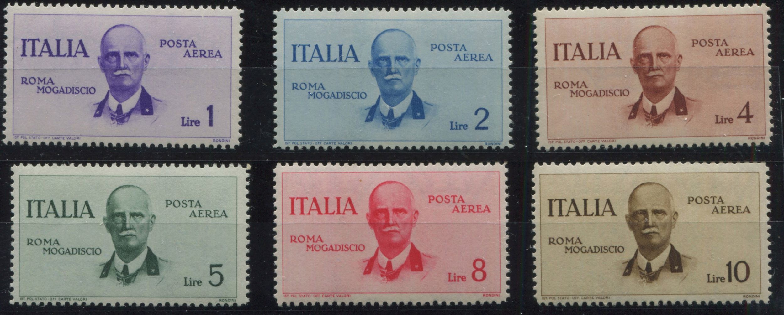 1934, Regno d’Italia, Posta Aerea serie “ Roma- Mogadisco”, serie cpl. (83/88)