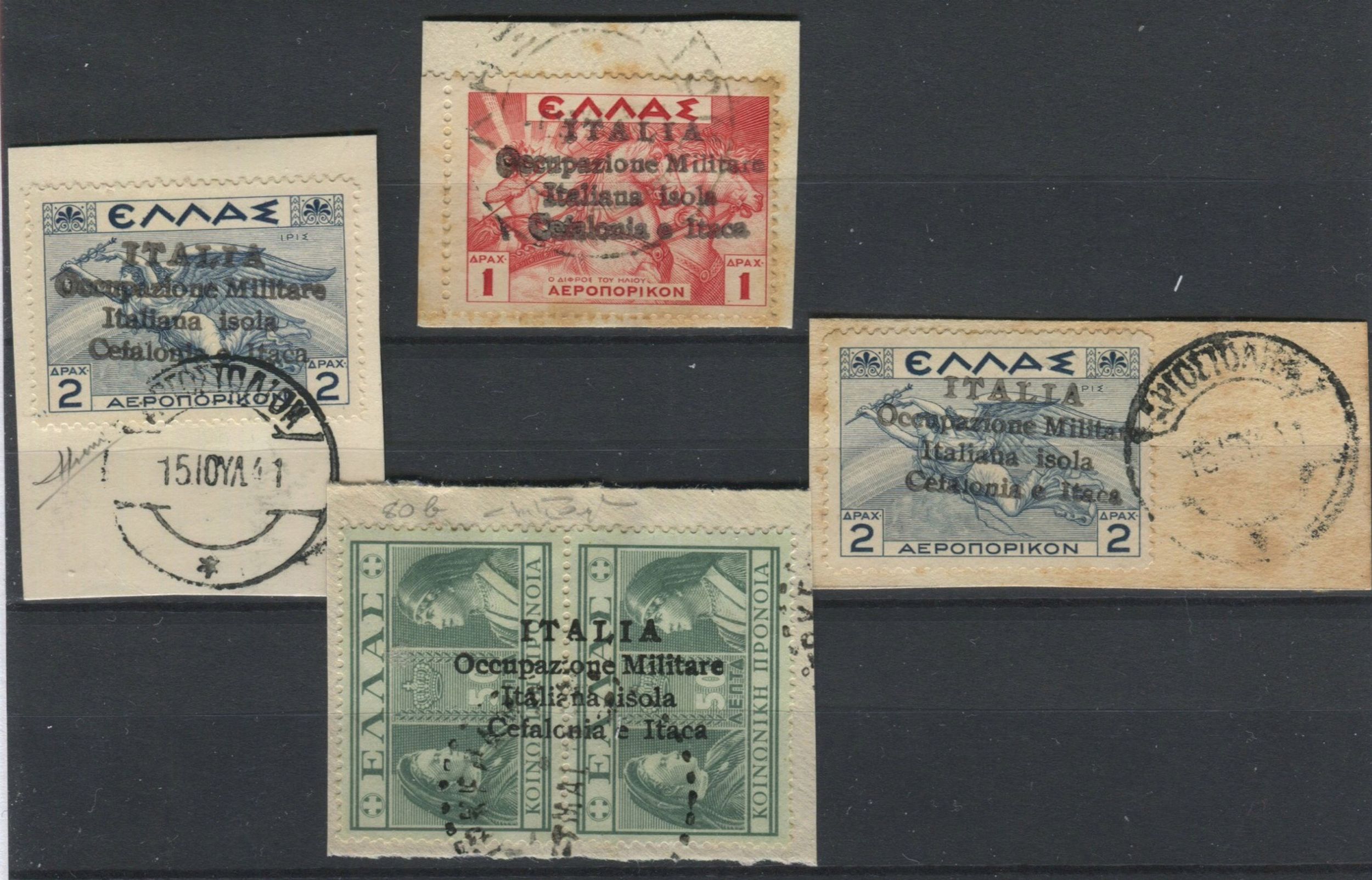 1941, Cefalonia e Itaca, quattro frammenti: posta ordinaria Emissioni di Argostoli [..]