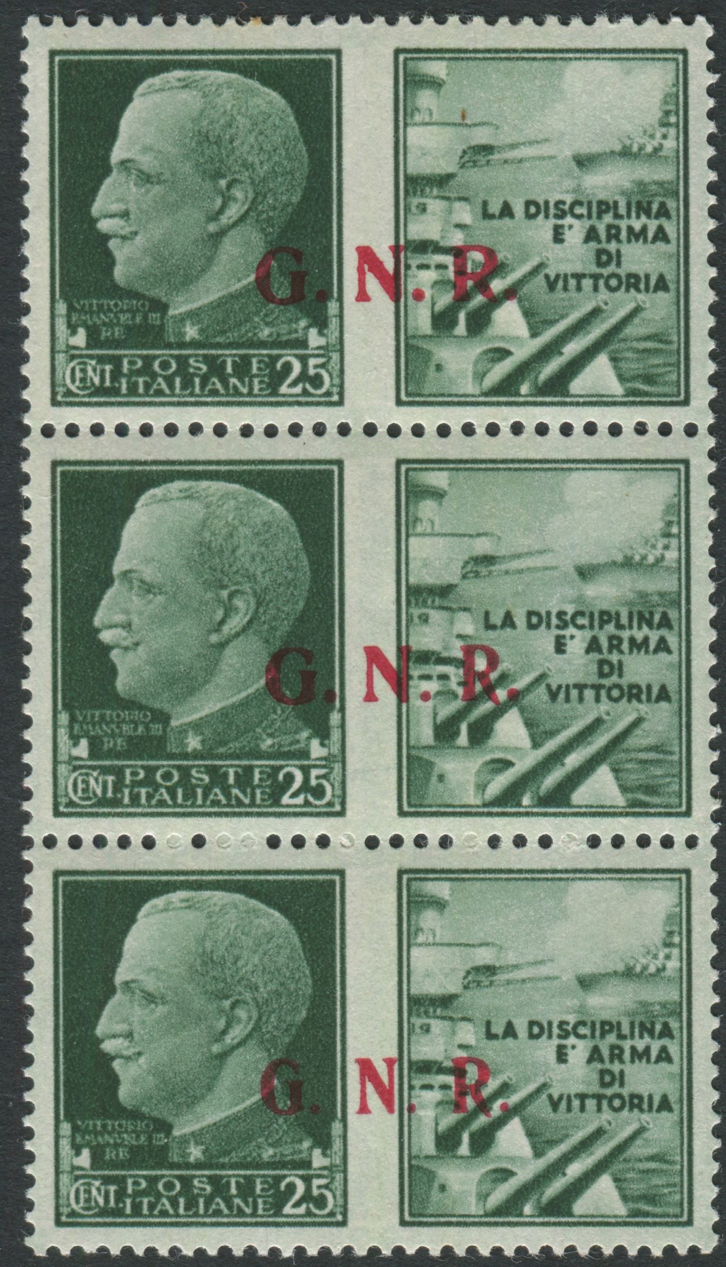 1944, Repubblica Sociale Italiana, Propaganda di Guerra, Trittico del 25 cent. verde [..]