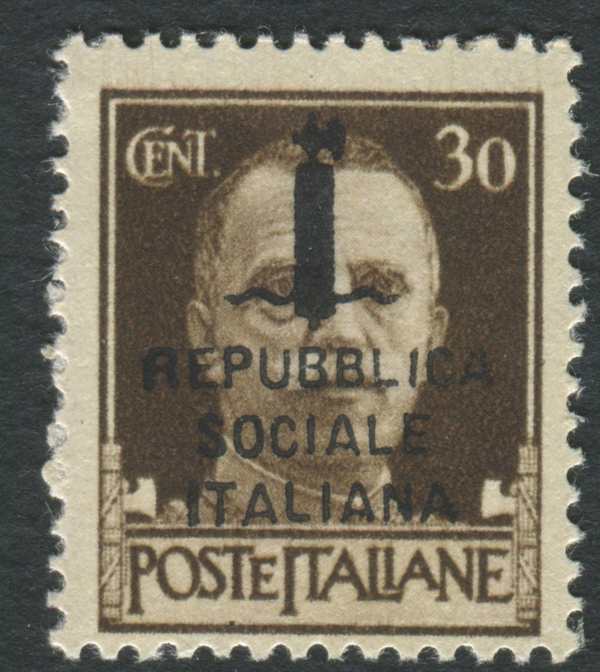 1944, Repubblica Sociale Italiana, Scambi di soprastampa, 30c. bruno (492B)