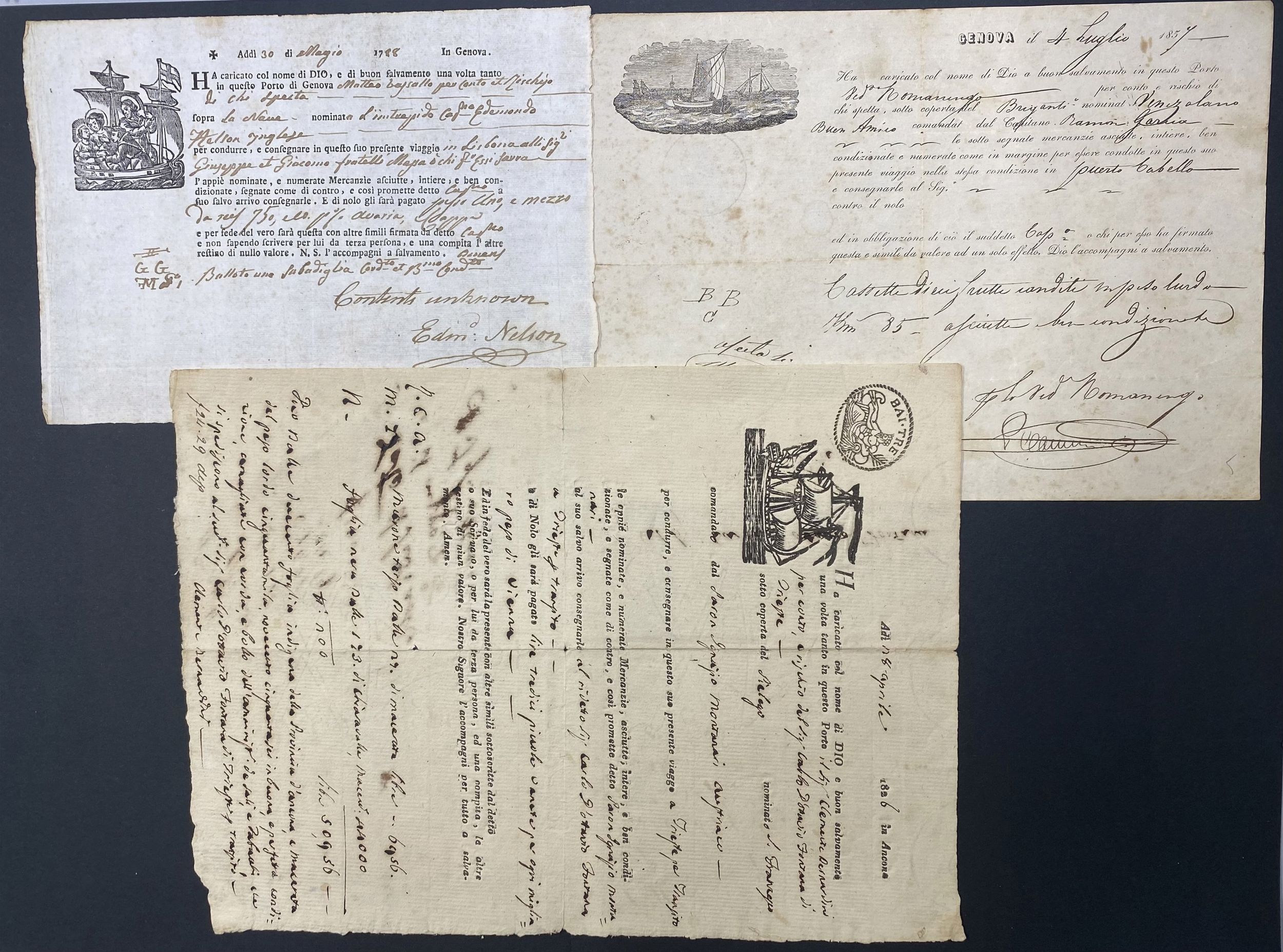 Polizze di carico italiane (15 esemplari) del XVIII e XIX secolo.
