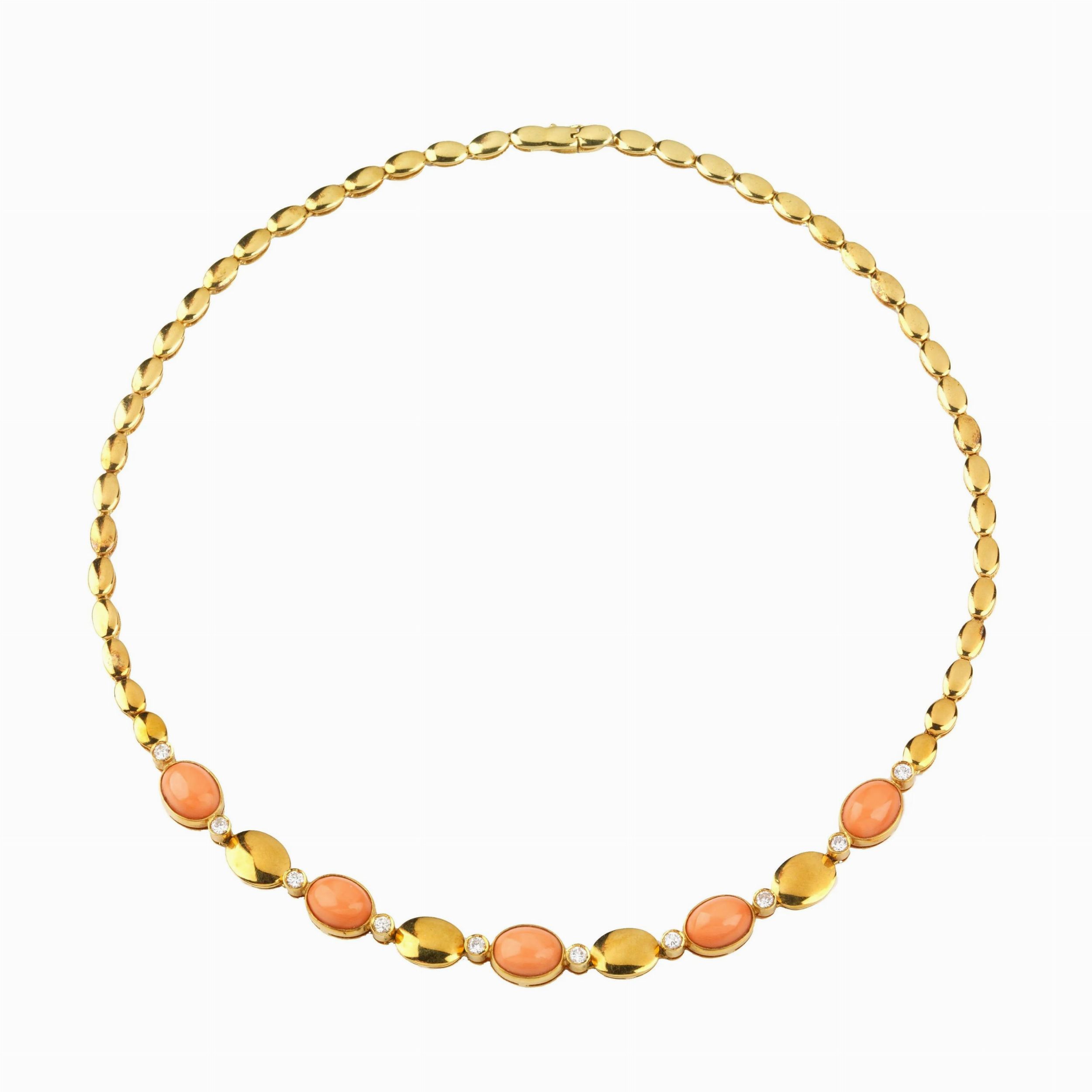GIROCOLLO CON CORALLO ROSA E DIAMANTI