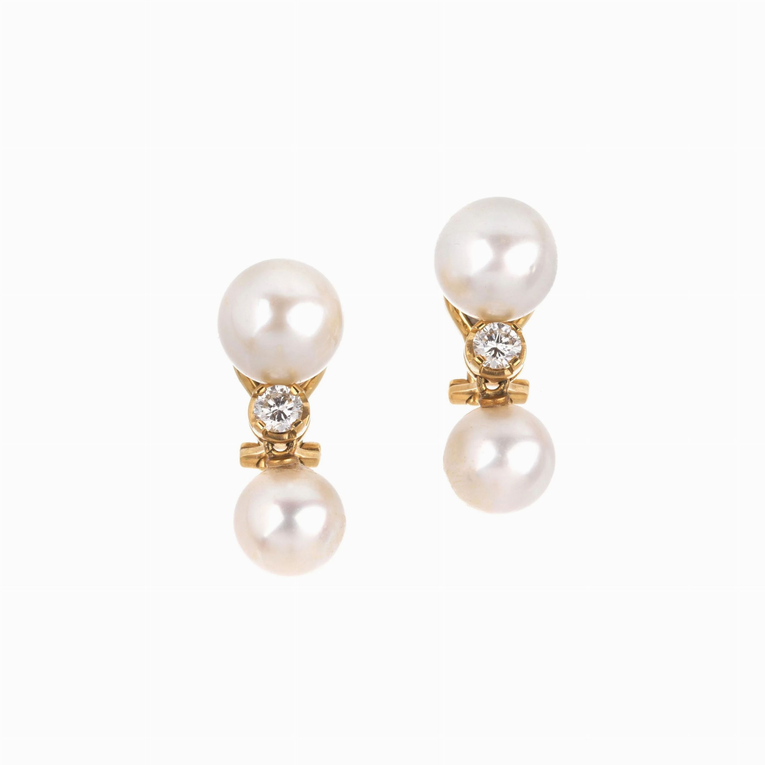 PAIO DI ORECCHINI PENDENTI CON PERLE E DIAMANTI