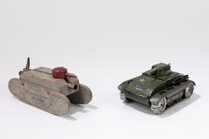 Tra i top lot dell'asta un rarissimo "Primus Roller Skater", uno dei giocattoli della Lehmann più ricercati al mondo, un'auto a molla in scala 1:18 della ditta Alcyon e una fantastica auto sperimentale in legno della Bantam, esemplare unico. Oltre a questi un'importante sezione dedicata ai giocattoli anteguerra e una a quelli militari tra cannoni, carri armati e auto blindate. |