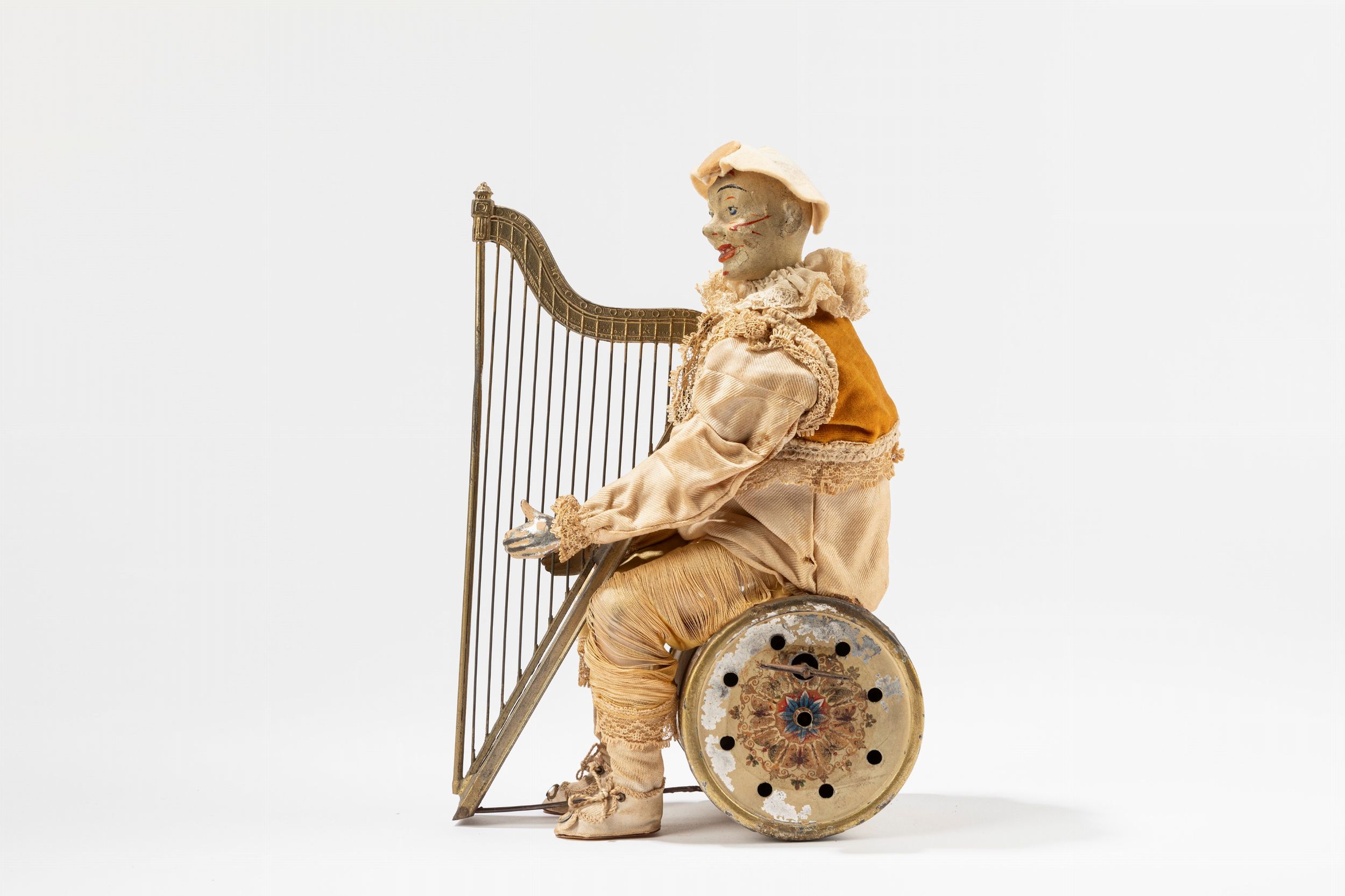 Testa in latta dipinta a manoMeccanismo a molla funzionante, condizioni eccellentiAltezza cm 30Prodotto in Germania