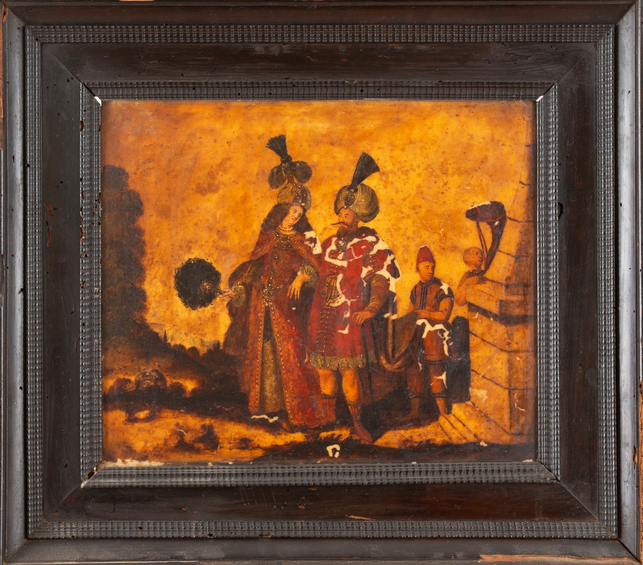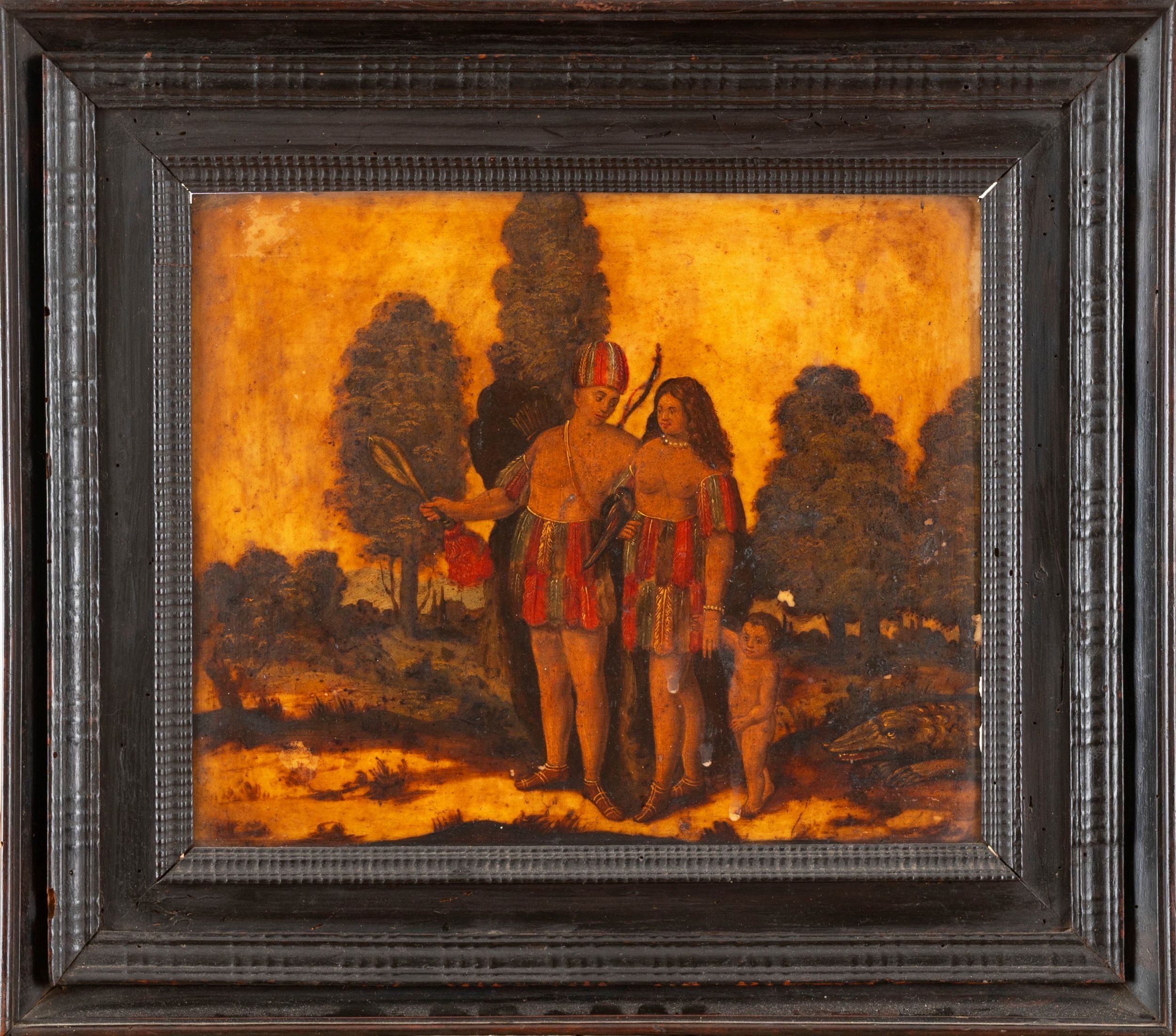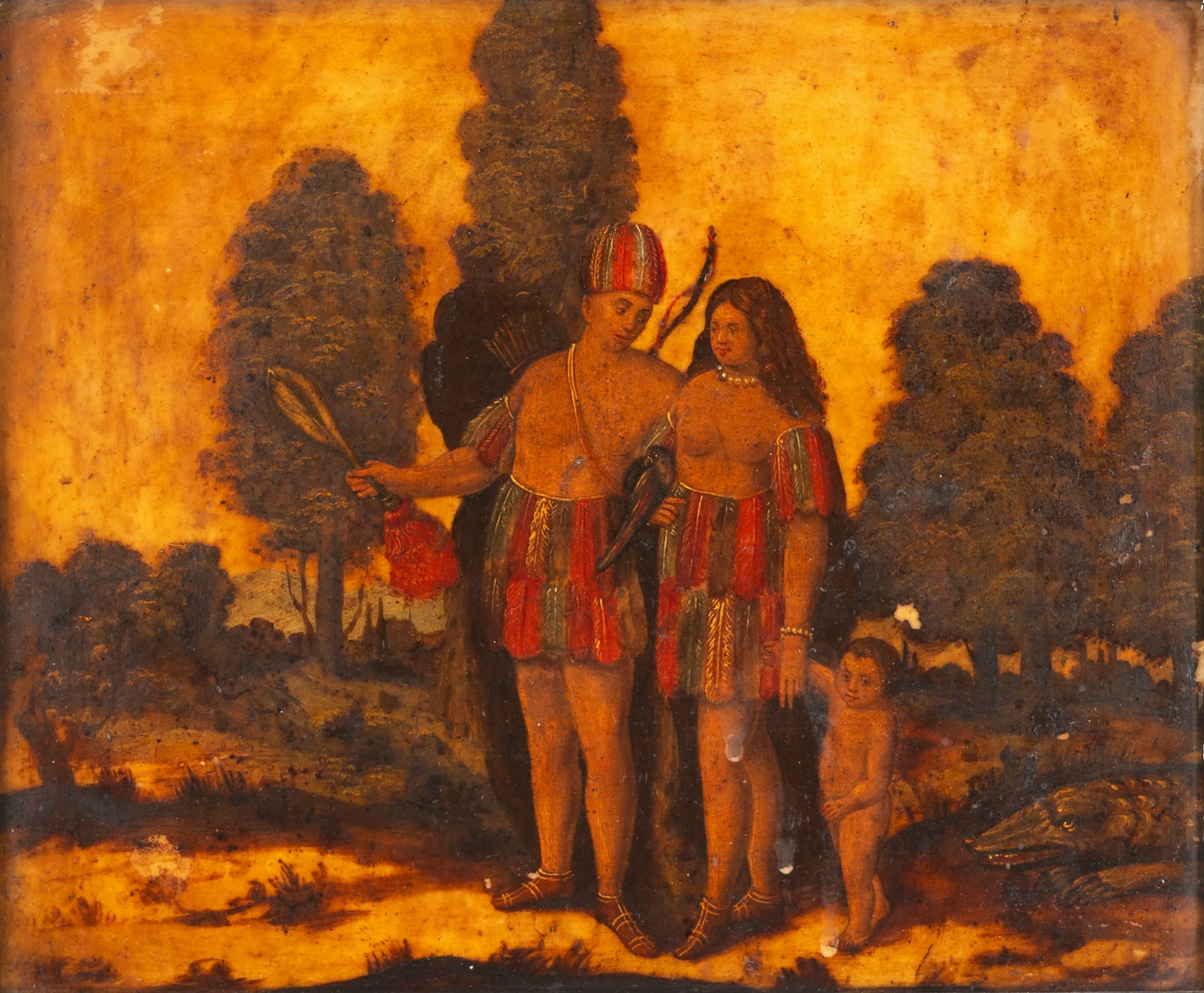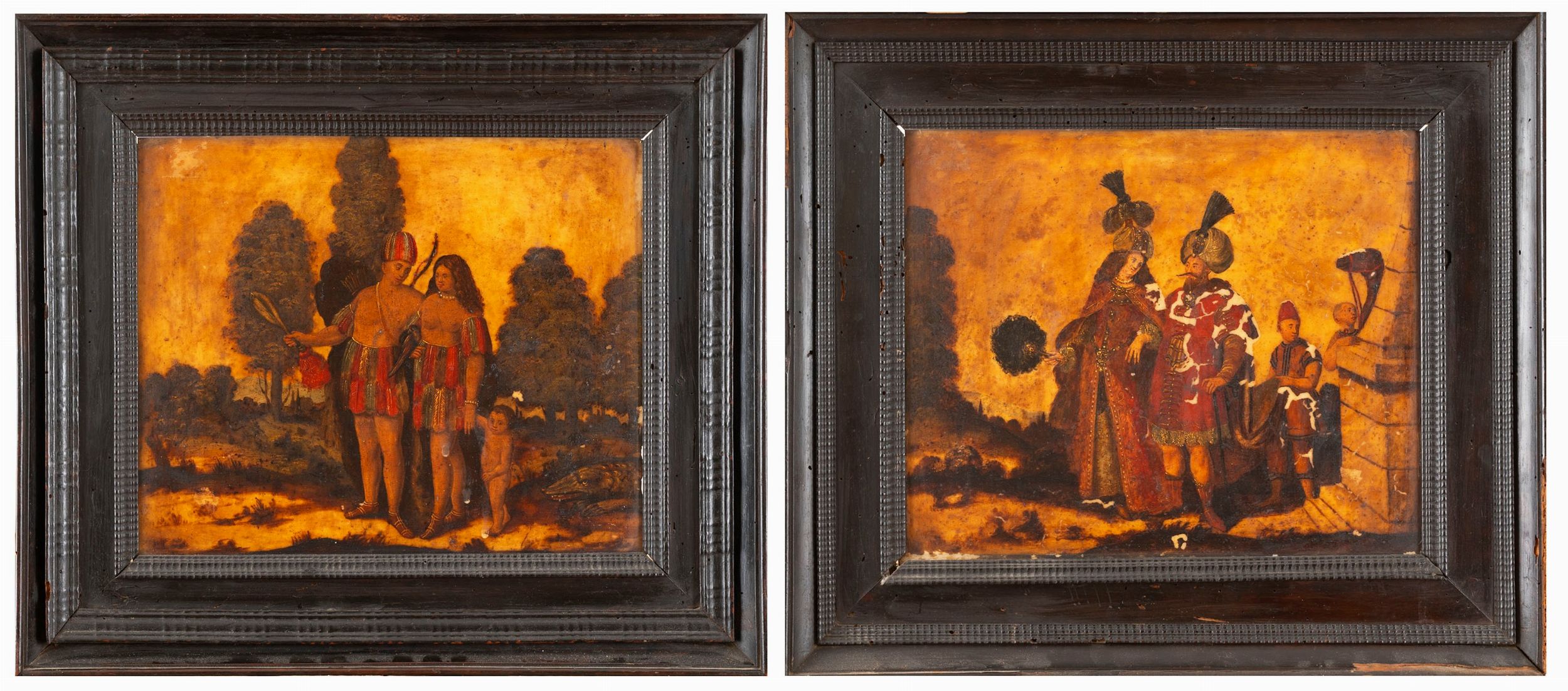 quattro dipinti, olio su marmo, cm 28 x 34 ciascuno
