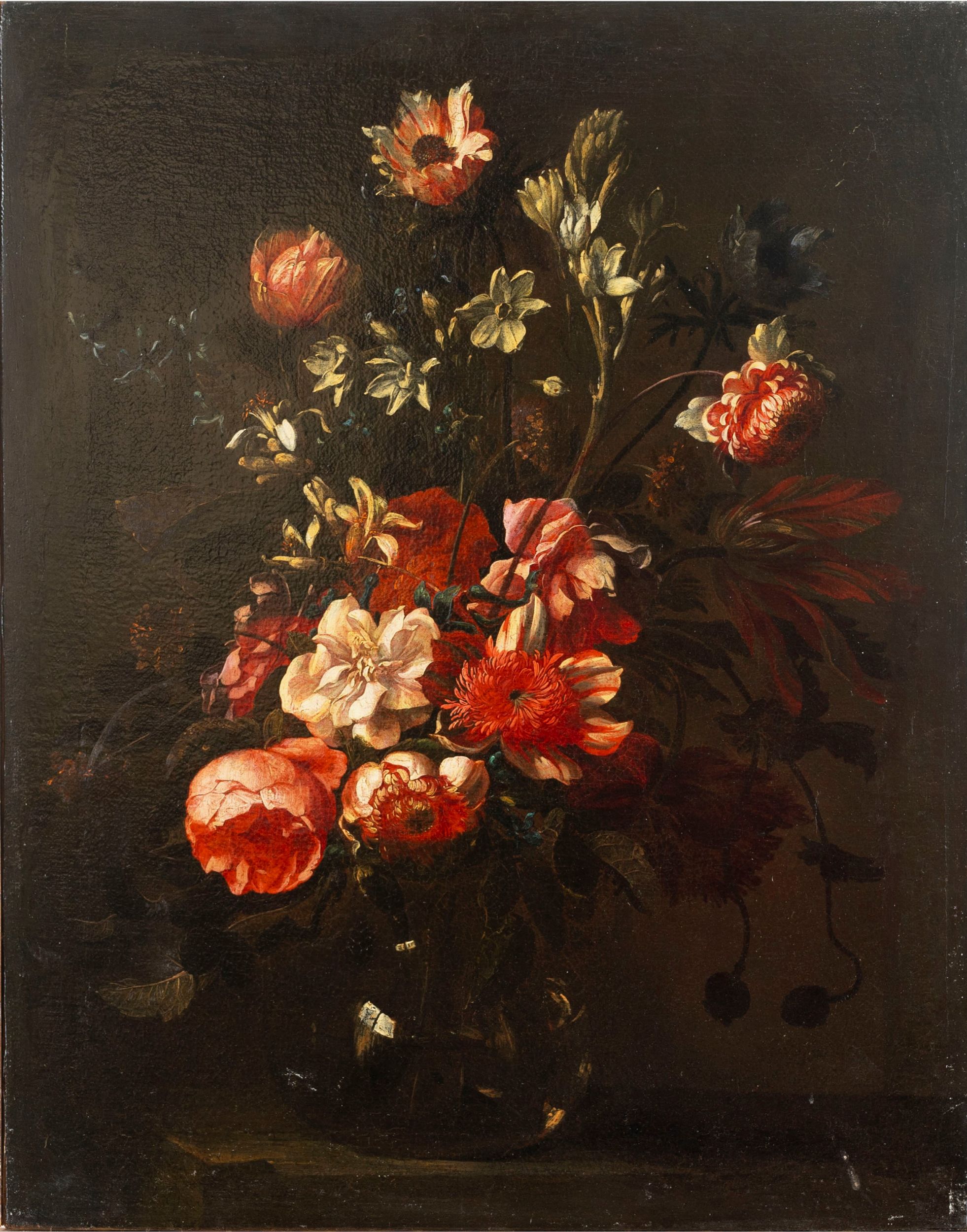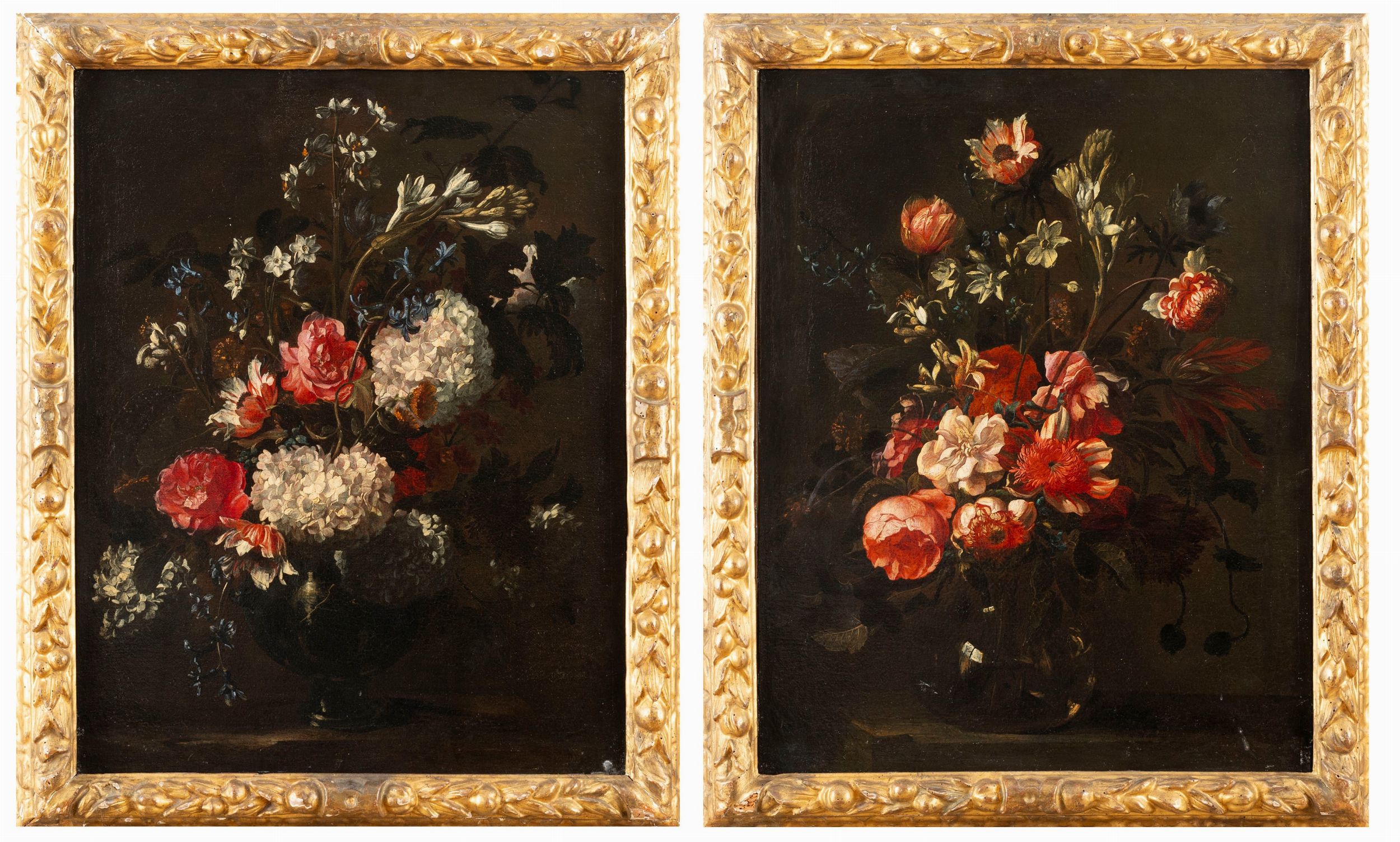 Rose, ortensie e narcisi in un vaso di vetro; e Rose, peonie e altri fiori in un [..]