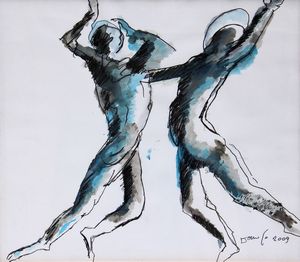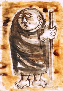tecnica mista su cartoncino, cm 50x70 2003 Firma Dario Fo (in basso a destra)