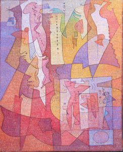 tecnica mista su tela, cm 70x70 1972 Firma, data M. Cusumano, 1972 (al retro)