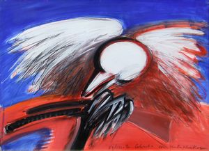 tecnica mista su cartoncino, cm 50x70 1990 Firma, data, titolo Vaglieri '90 Colomba con kola... (in basso a d [..]
