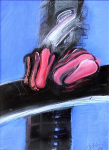 tecnica mista su cartoncino, cm 70x50 1988 Firma, data, titolo Vaglieri '88, Al confine con la città (in basso [..]
