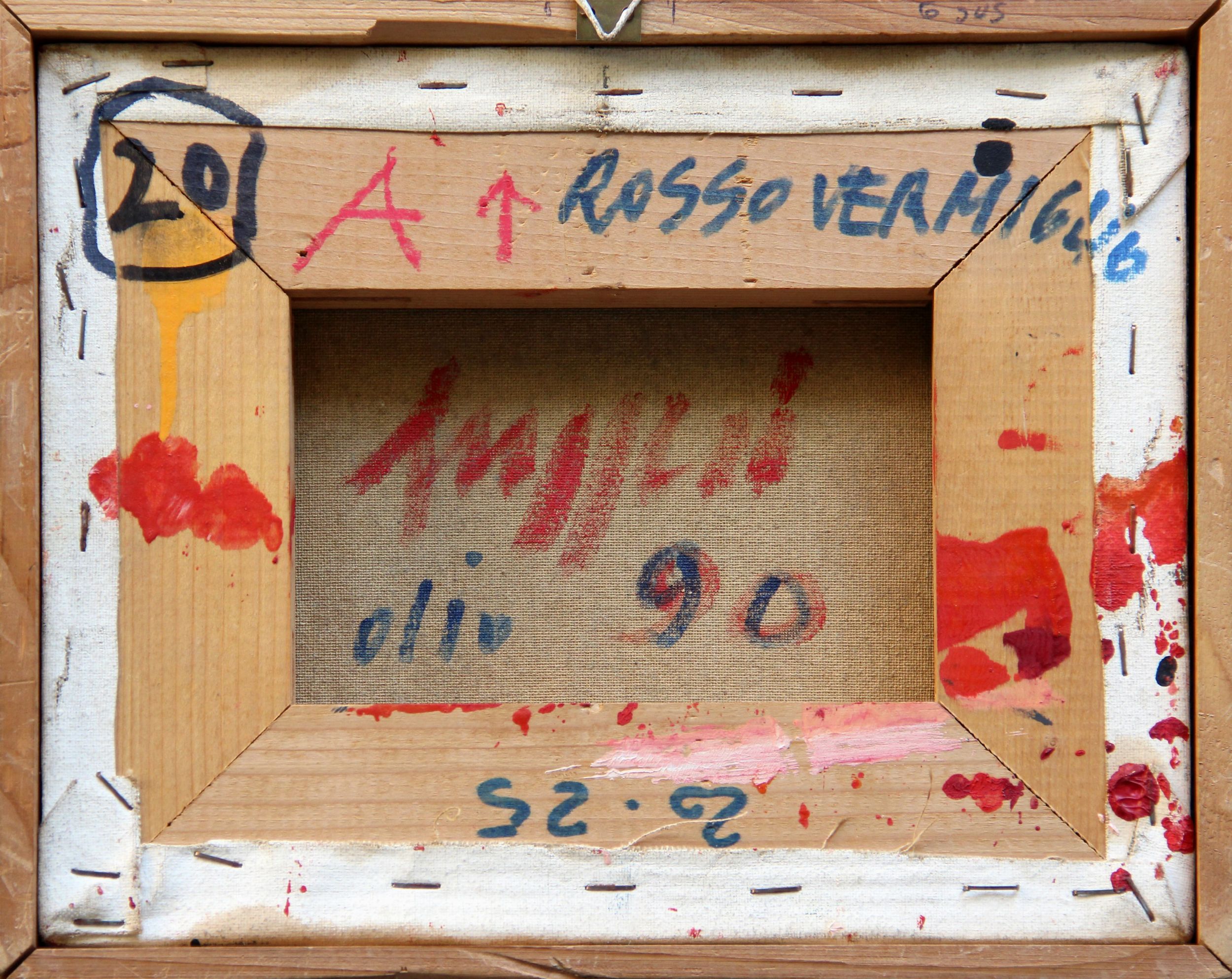1990 Titolo, firma, tecnica, data, misura Rosso Vermiglio, Ruggeri, olio, 90, 20 25 (al retro)