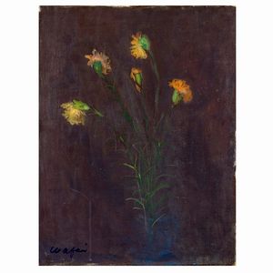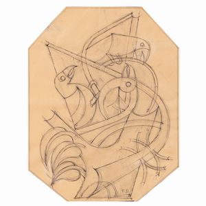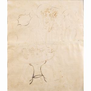 67x55,5 cm. Ancona 1910 - Roma 1976 'Il capocomico', 1967, pastello ceroso a olio su carta papier velour intelata, [..]