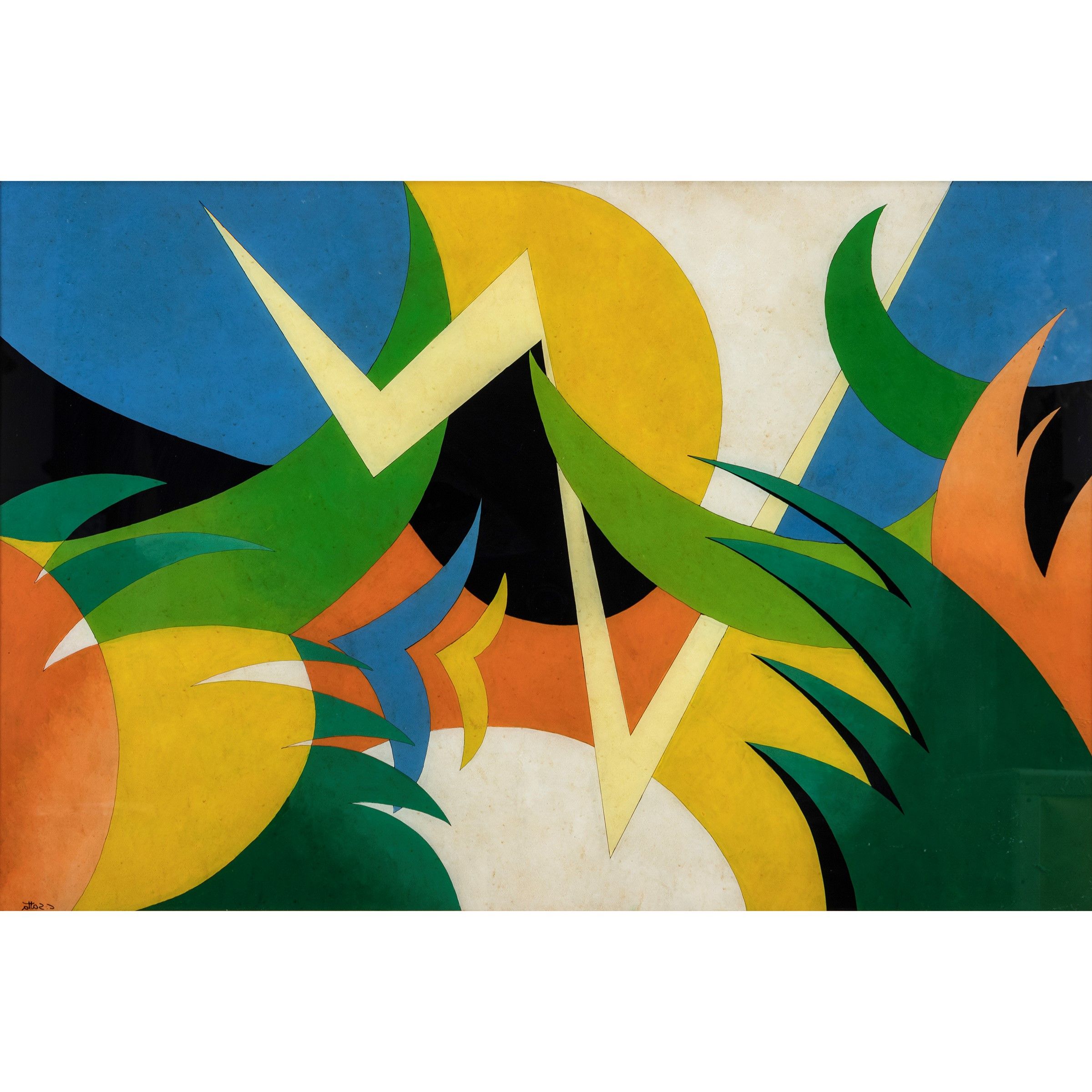 Roma 1955 'Senza titolo', dipinto sottovetro, firmato in basso a sinistra, entro cornice