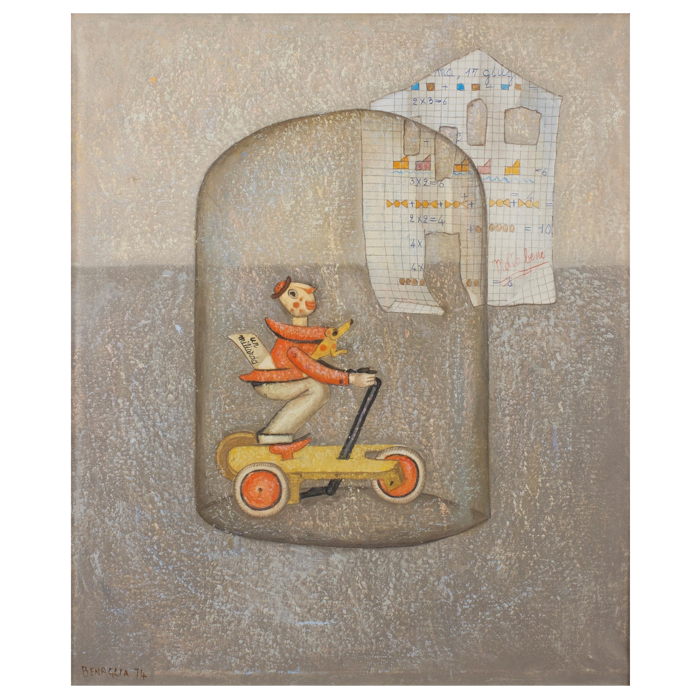 Roma 1938 'Il signor Bonaventura compra casa', 1974, olio su tela, firmato e datato in basso a sinistra e sul retro