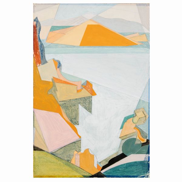 Modena 1894 - Roma 1956 'Capri', 1922, tempera su carta, entro cornice