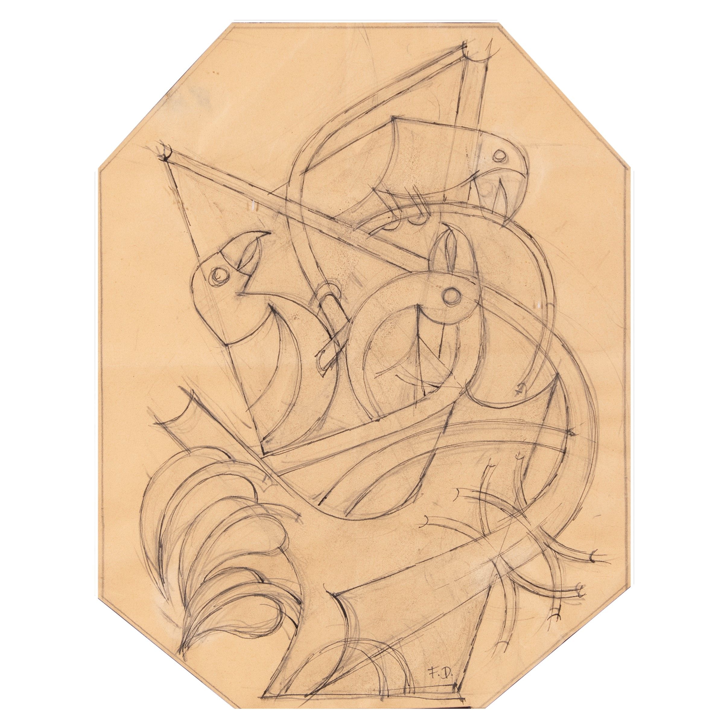 Fondo 1892 - Rovereto 1960 'Tucani', china e matita su carta, siglata in basso a destra, entro cornice