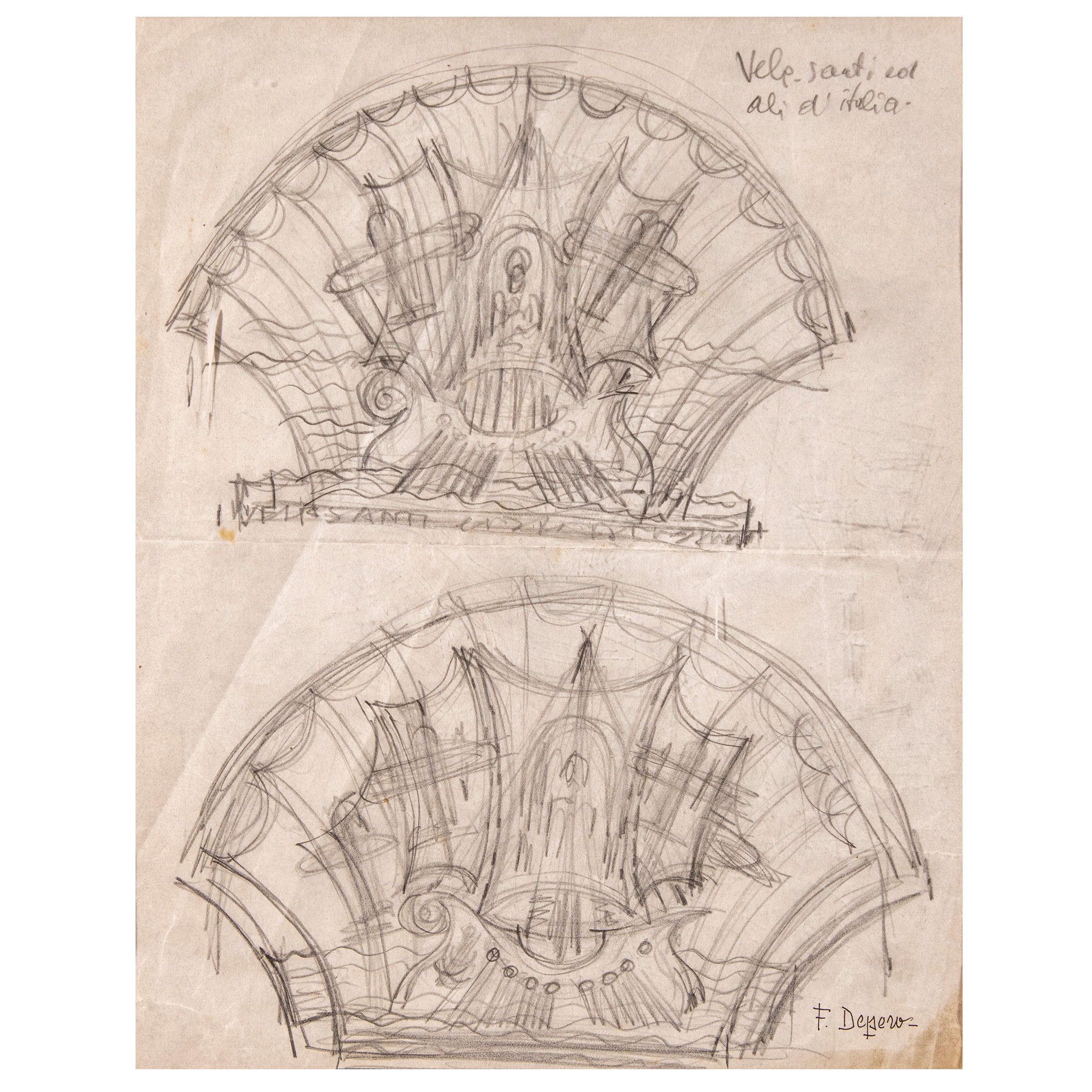 Fondo 1892 - Rovereto 1960 'Vele santi ed ali d'Italia', matita su carta, firmata in basso a destra, titolato in alto a destra, entro cornice