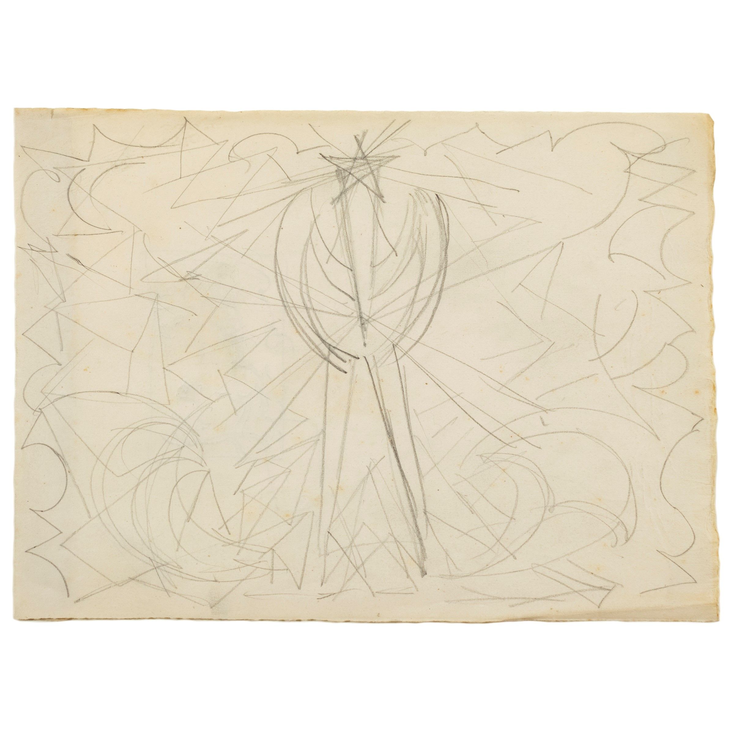 22x33 cm. Torino 1871 - Roma 1958 'Genio Futurista-studio', 1925 circa, matita su carta, entro cornice Autentica di Elena Gigli su fotografia Provenienza: Roma, Casa Balla; Roma, Galleria Russo (timbro al retro); Roma, Francesca Marcucci Tosti; Roma, collezione privata