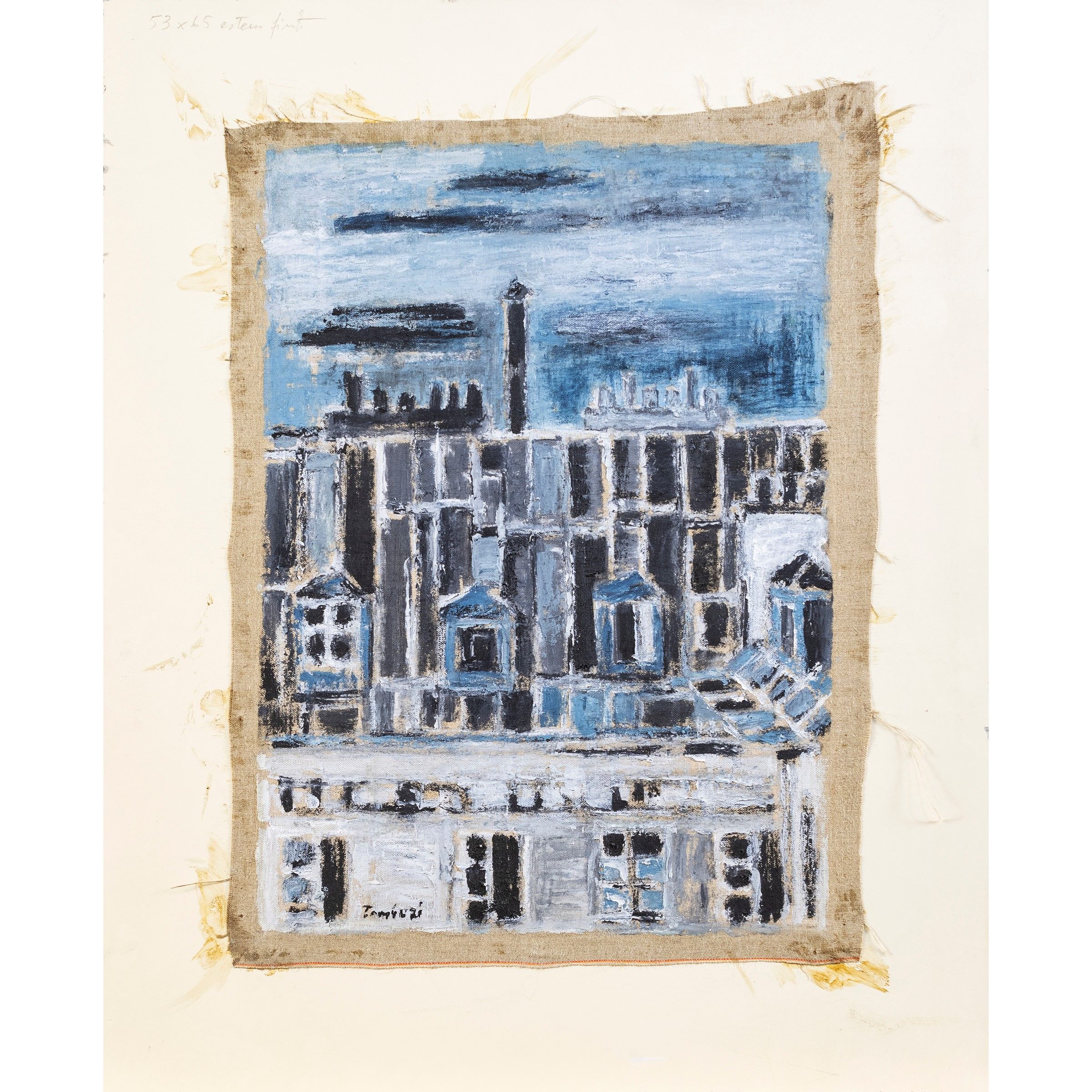 Jesi 1910 - Parigi 1994 'Case', olio su tela applicata su tavola, firmato in basso a sinistra, entro cornice. Bibliografia: Il palazzo e la collezione d'arte della Tirrenia, a cura di Nicola Spinosa, Electa Napoli, Napoli 2001, pag.107, n.57
