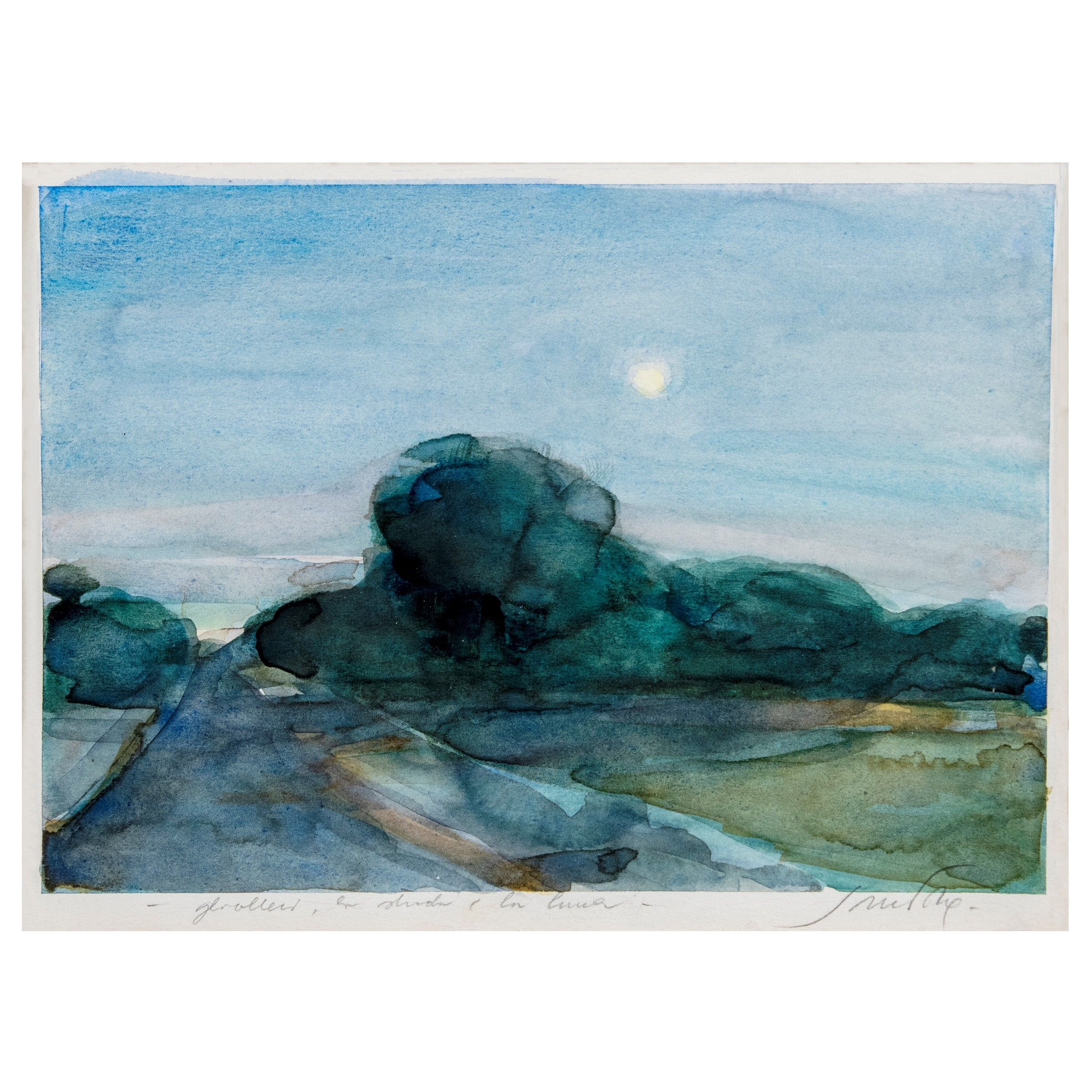 Scicli 1935 - Modica 2018 'Gli alberi, la strada e la luna', 1978, acquerello su carta, firmato in basso a destra, entro cornice