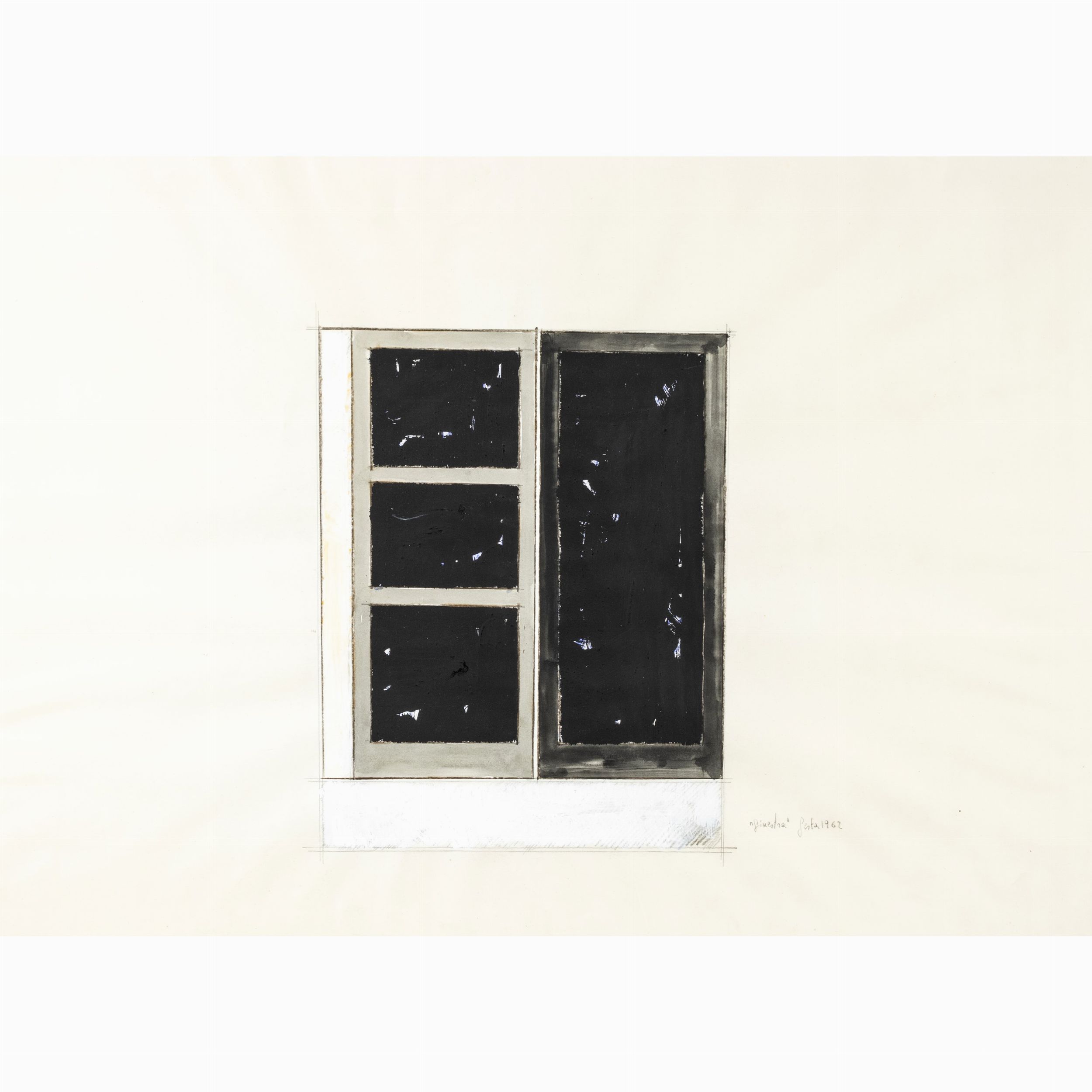 Roma 1938 - 1988 'Finestra', 1962, tecnica mista su carta, firmata, datata e titolata in basso a destra Autentica dell'Archivio Tano Festa, Pernumia, con il n. G 1955/2460, certificato su fotografia