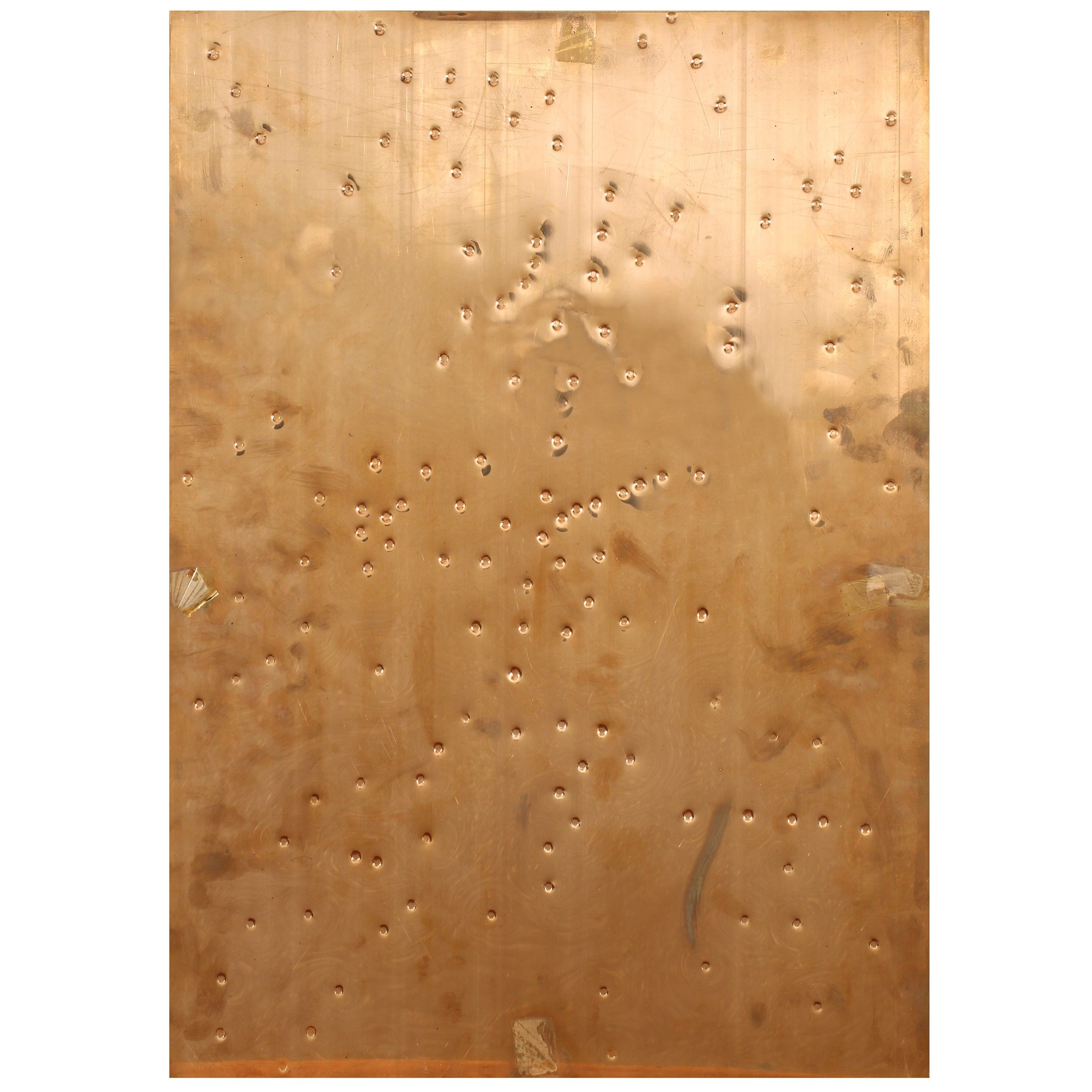 Fontana Liri 1910 - Milano 1998 'Composizione', 1970 circa, tecnica mista su lastra di rame, firmata, entro cornice