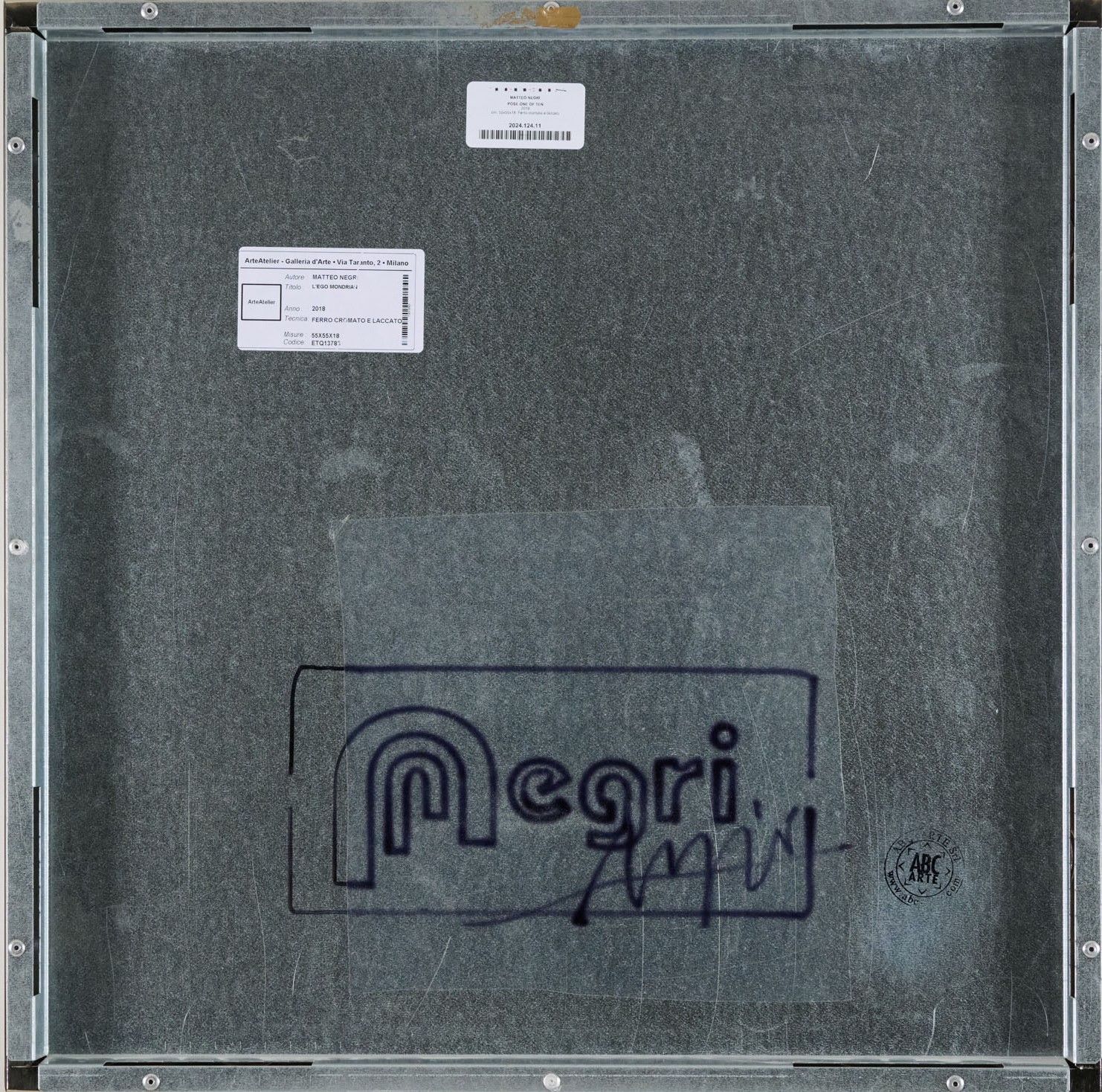 2018 Sul verso: firma e timbro dell'Artista; Timbro ' ABC Arte '; etichetta ' Arte Atelier ', Milano, con descrizione.