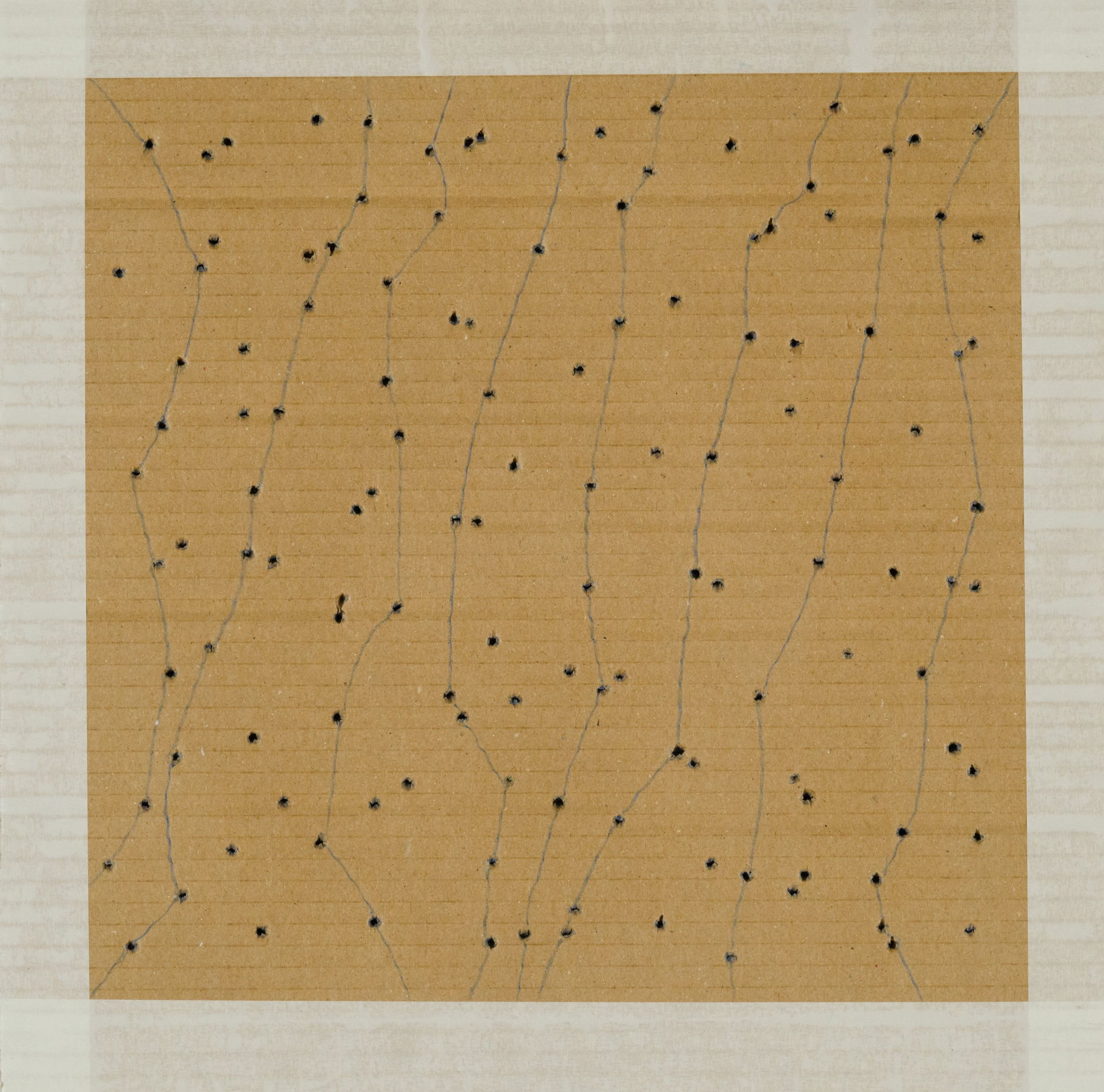 Biro,scotch ed interventi su cartone, cm. 39,5x39,5