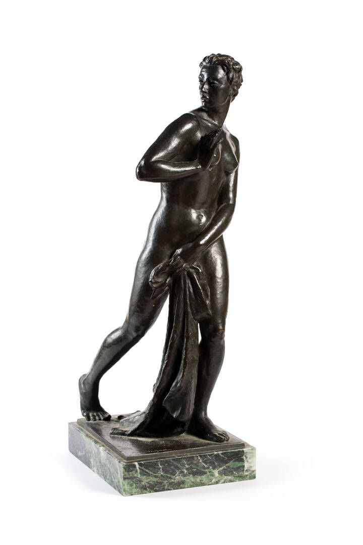 H cm 49 (senza base) scultura in bronzo Base originale in marmo Verde Alpi Opera firmata sulla base