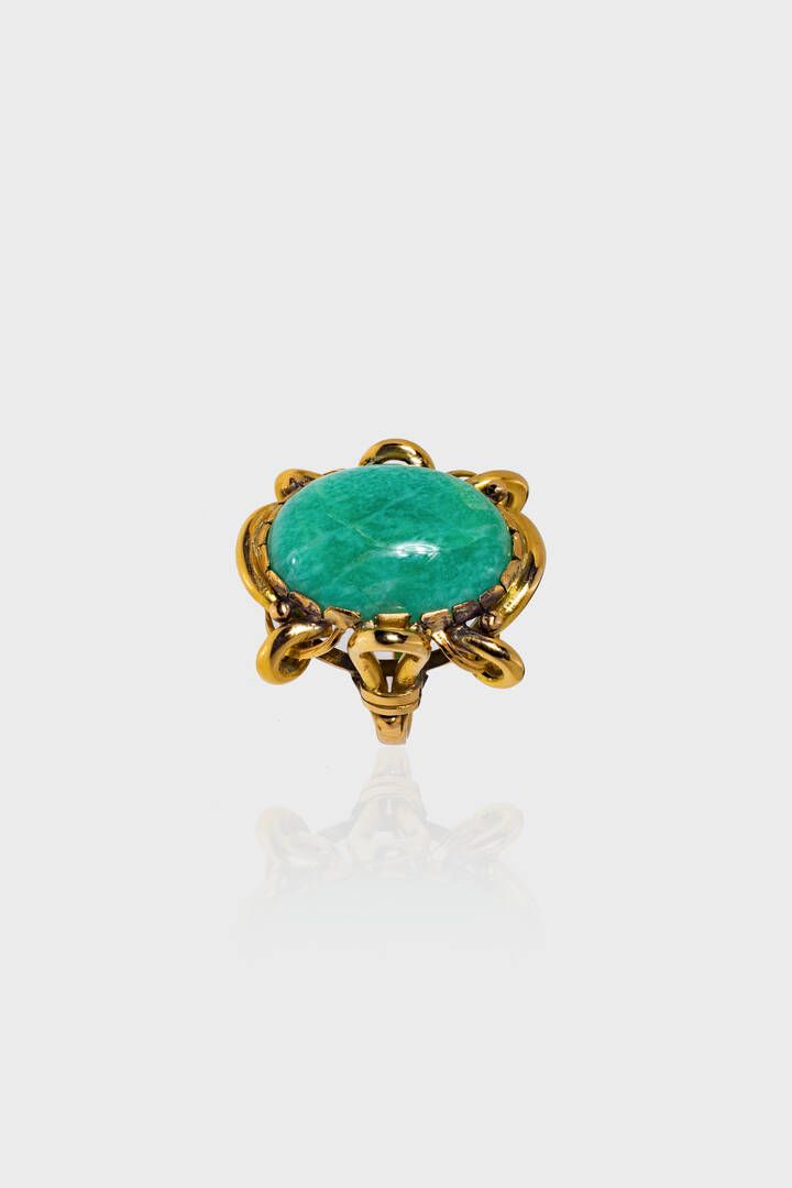 Peso gr 10 Misura 16 (56) in oro giallo anni '40 con avventurina cabochon