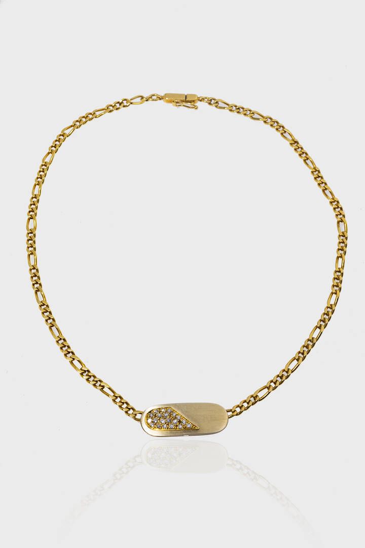 Peso gr 17 8 in oro giallo lavorato a maglia groumette con al centro elemento ovale con inserto in diamanti taglio 8/8 per totali ct 0 40 ca