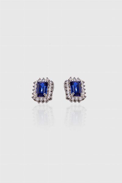 Peso gr 2 0 in oro bianco a lobo con due zaffiri sintetici; contornati da diamanti [..]