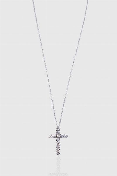 Peso gr 2 8 in oro bianco a forma di croce con diamanti taglio brillante per totali ct 0 50 ca probabile colore G-H purezza IF-VVS