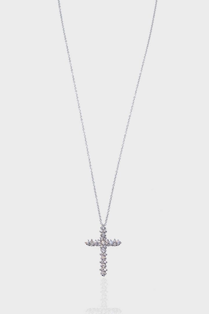 Peso gr 2 8 in oro bianco a forma di croce con diamanti taglio brillante per totali [..]