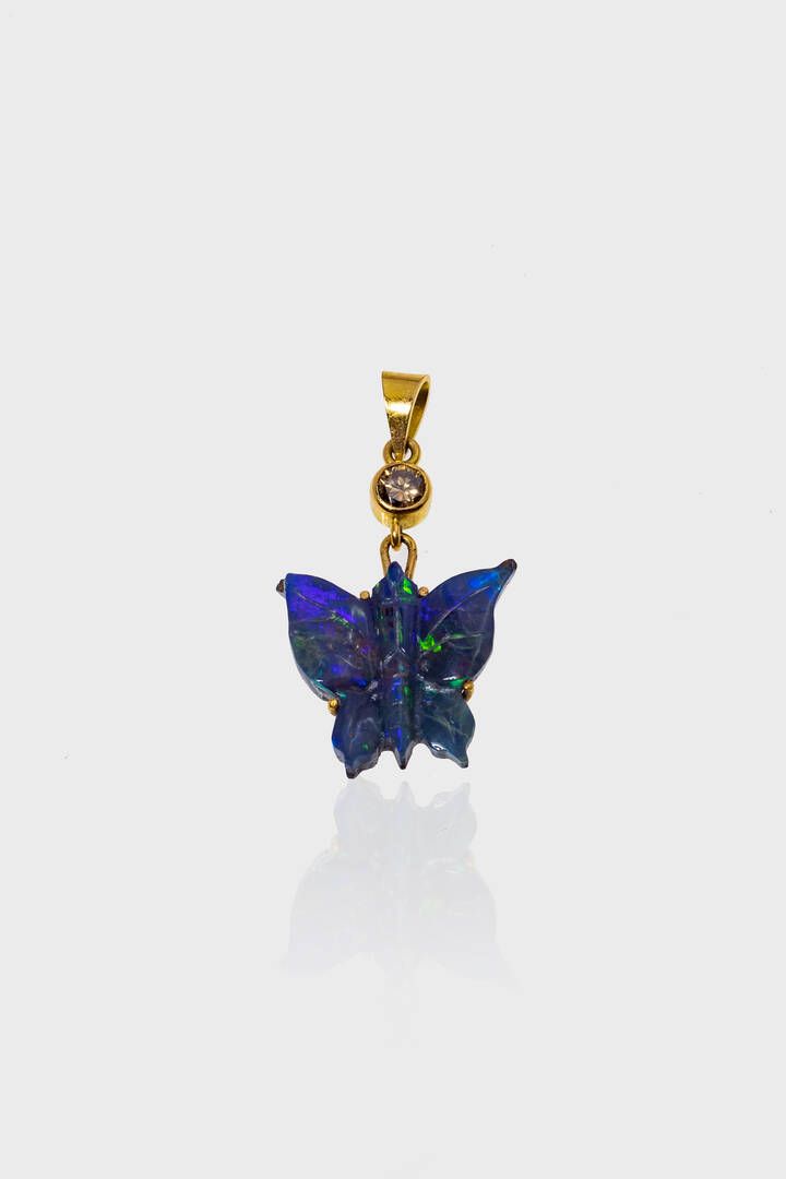 Peso gr 3 4 Cm 1 5x1 5 in oro giallo con farfalla incisa in opale e un diamante [..]
