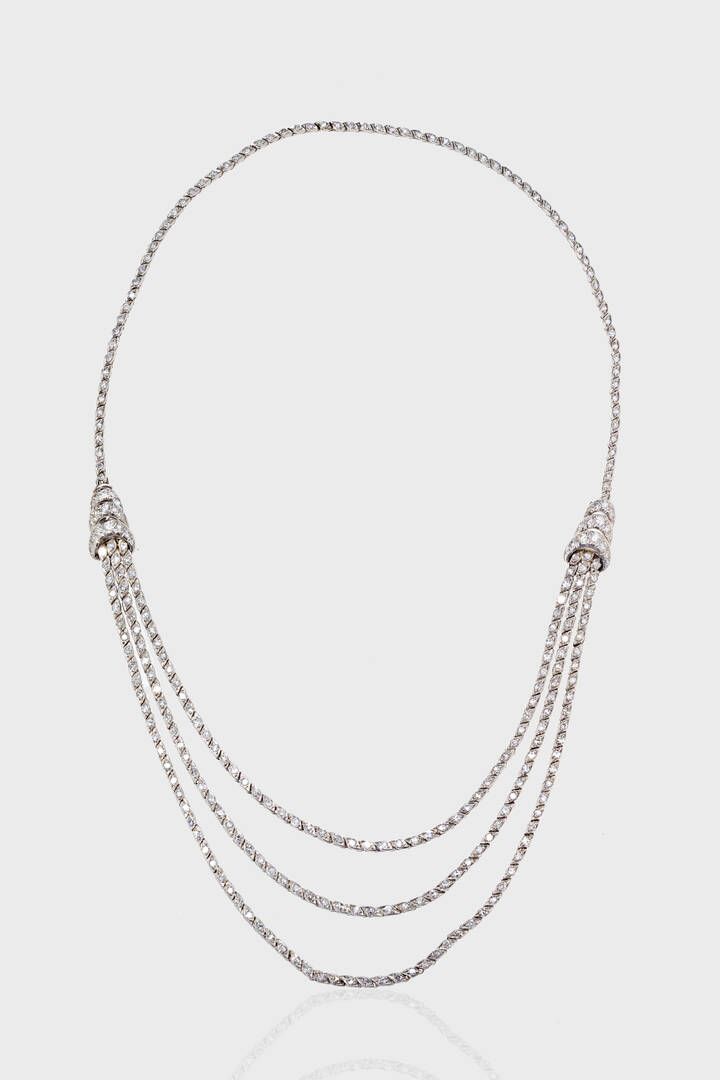 Peso gr 33 9 in oro bianco al centro tre fili interamente in diamanti taglio 8/8 per totali ct 3 0 ca