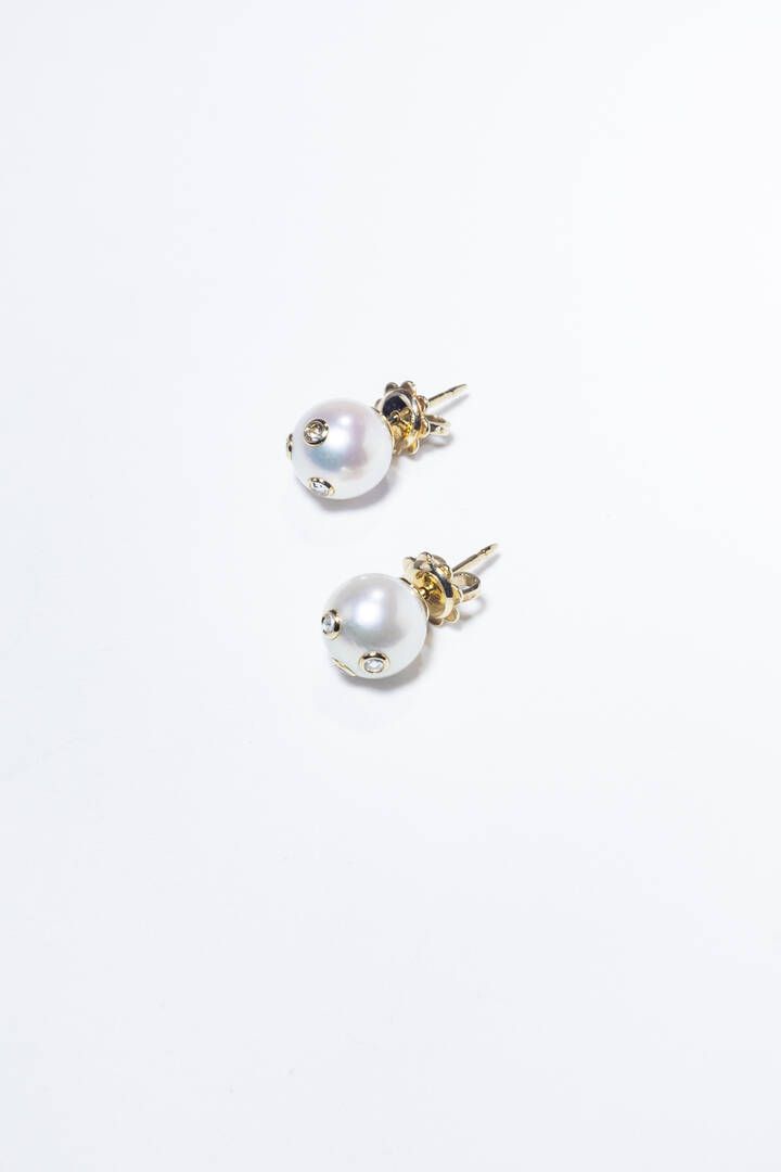 Peso gr 4 1 Coppia di orecchini in oro bianco firmati Compagnia delle perle (Mikimoto) [..]