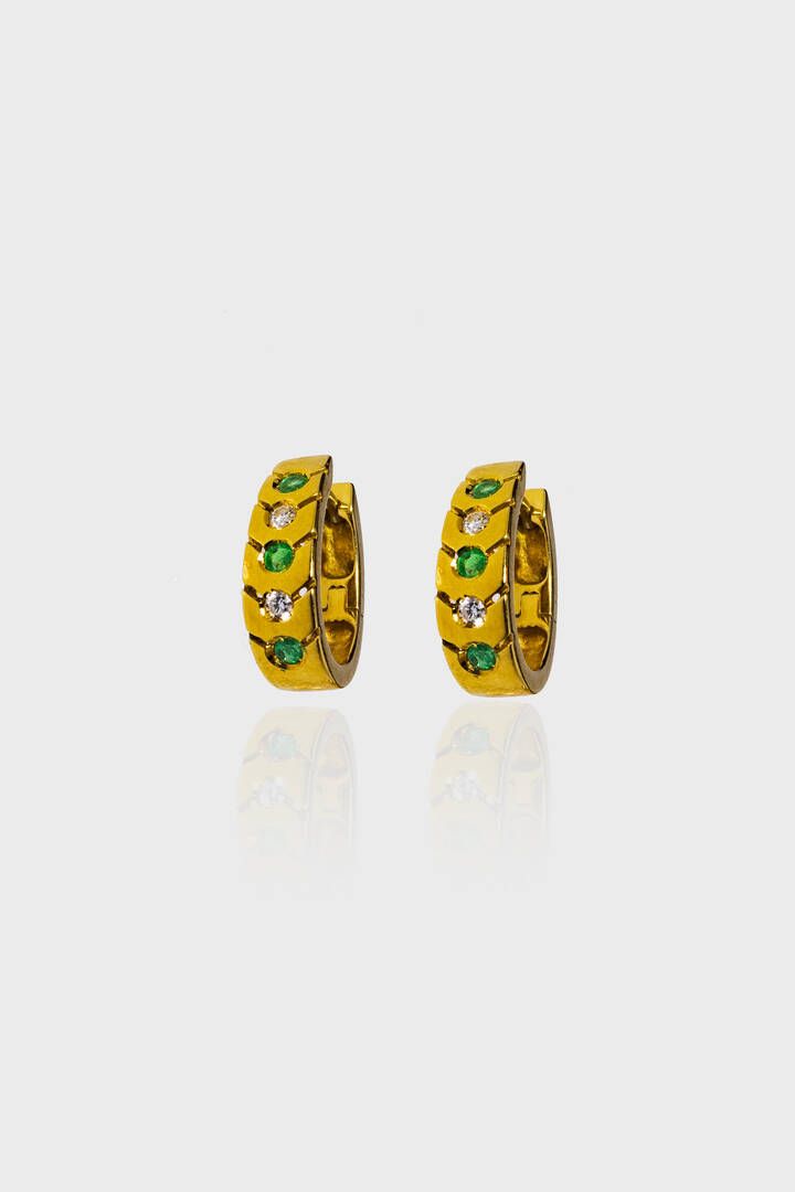 Peso gr 5 1 in oro giallo a cerchio ovalizzato con segmenti anteriori con smeraldi e diamanti taglio brillante per totali ct 0 15 ca