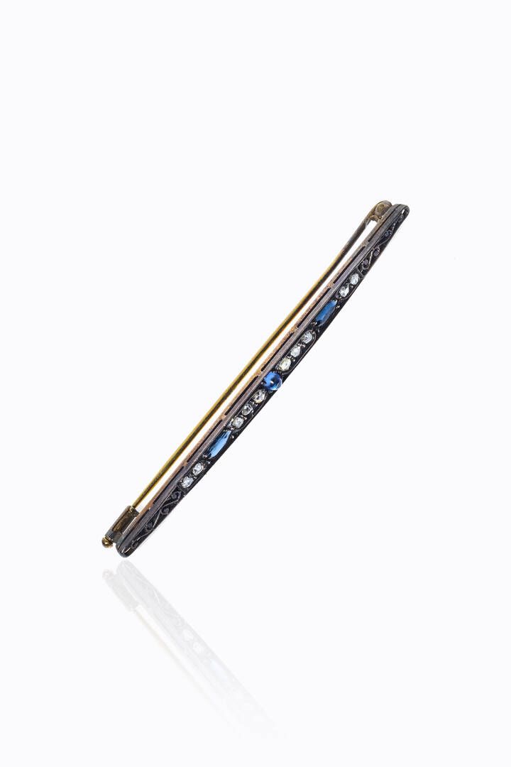 Peso gr 6 2 Lunghezza cm 8 in oro a bassa caratura ed argento a barretta con zaffiri cabochon e navette e rosette di diamanti per totali ct 0 50 ca