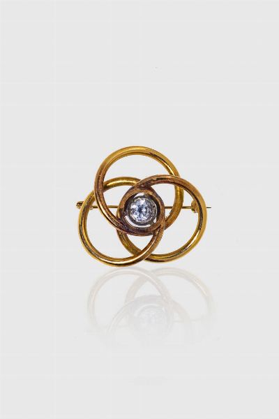 Peso gr 6 9 Cm 3 5x3 in oro giallo XIX secolo lavorata a canna vuota; al centro [..]