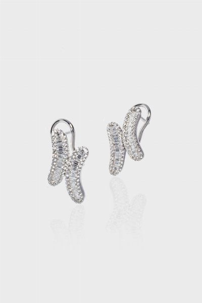 Peso gr 6 9 in oro bianco con segmenti mossi in diamanti taglio trapezio baguette [..]