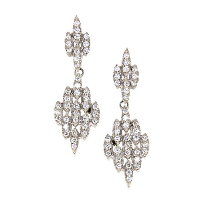 Peso gr 7 2 Coppia di orecchini pendenti in oro bianco a motivo di corteccia con diamanti taglio brillante per complessivi ct 0 75 ca