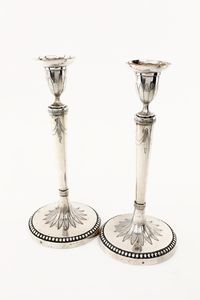 argento, altezza cm 24,5 - gr. 800 fusto a colonna con portacandela a vaso e bobèche estraibile, piede circolare [..]