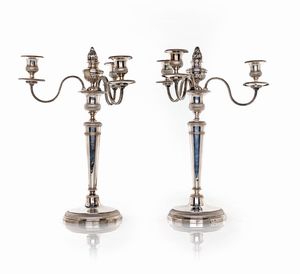 argento, altezza cm 12 - peso complessivo gr. 1230 con steli scultorei in forma di albero con figura di fauno; [..]
