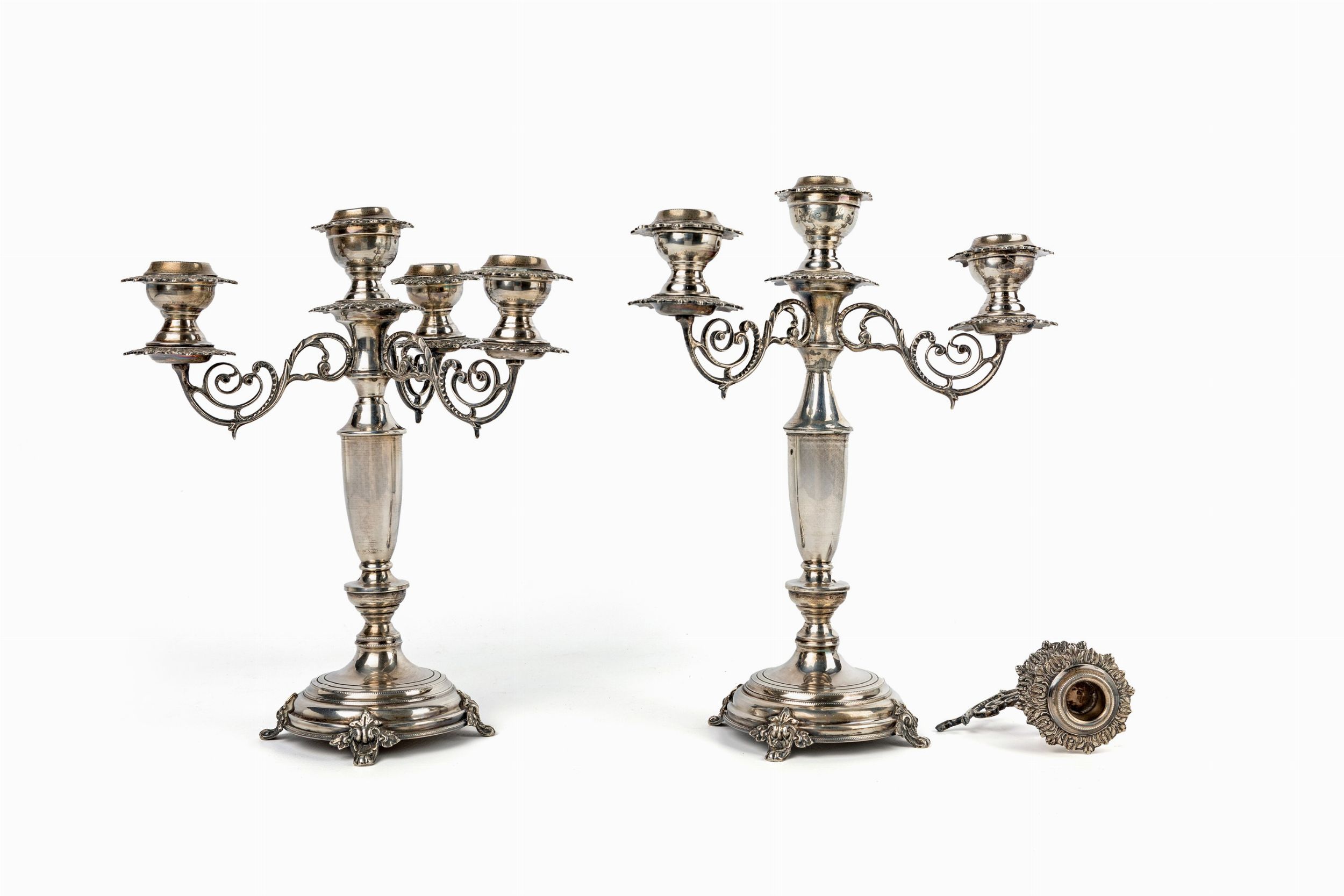 Coppia di candelabri in argento a quattro luci, Francia (?), XIX secolo
