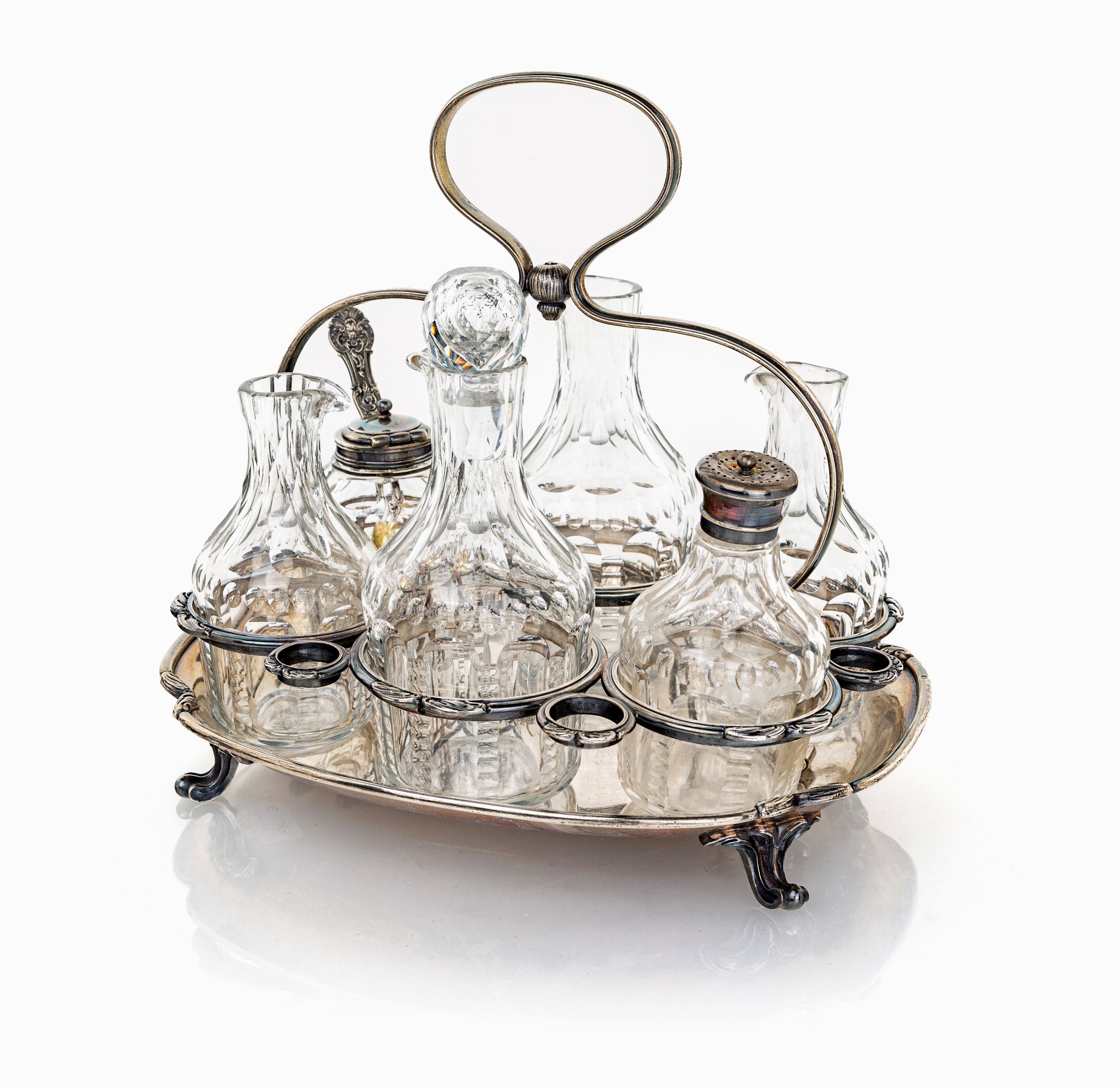 Cruet in argento con sei ampolle in vetro, Francia XIX secolo