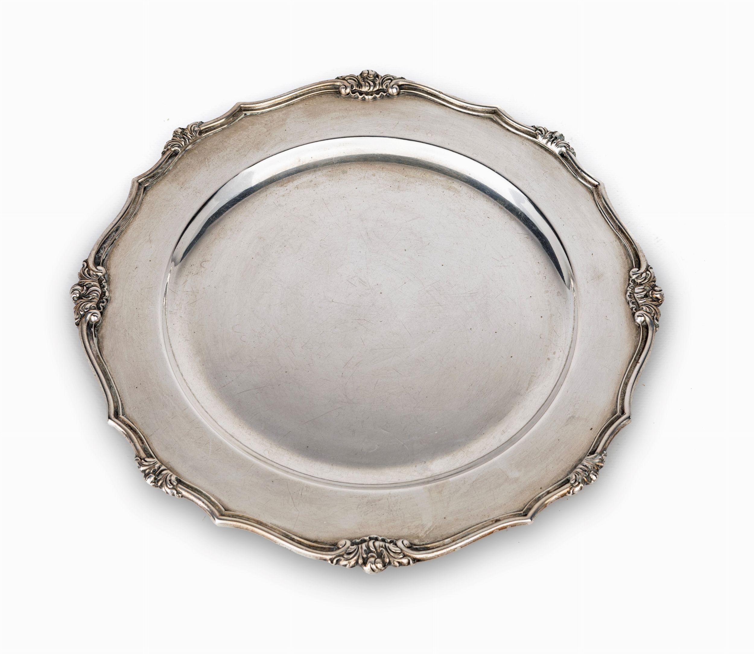 tesa con orlo sagomato sottolineato da volute alternate a motivi vegetali